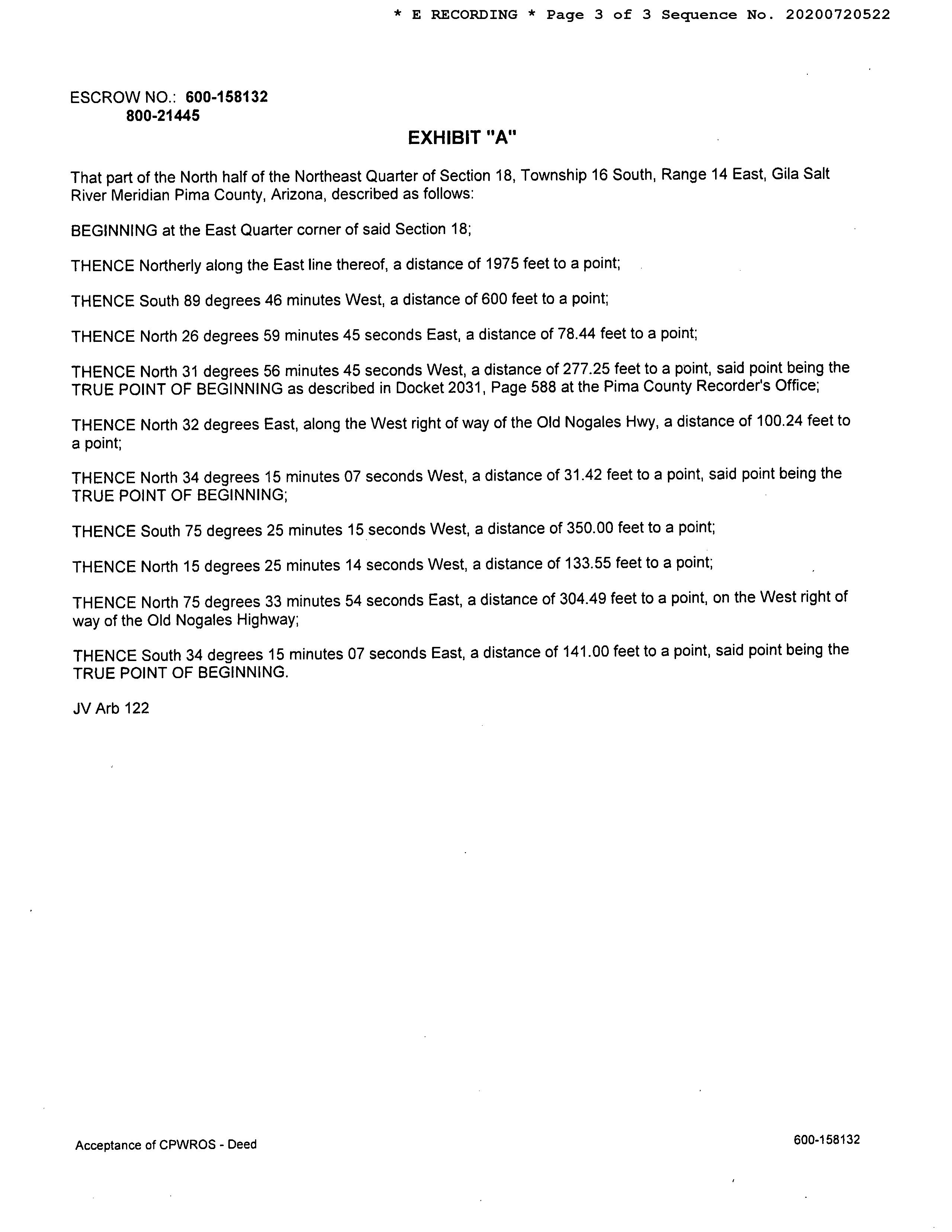 LEGAL: PTN OF SOUTHERLY 141' OF NORTHERLY 180' M/L LYG W & ADJ TO OLD NOGALES HWY IN NE4 NE4 1.00 AC SEC 18-16-14