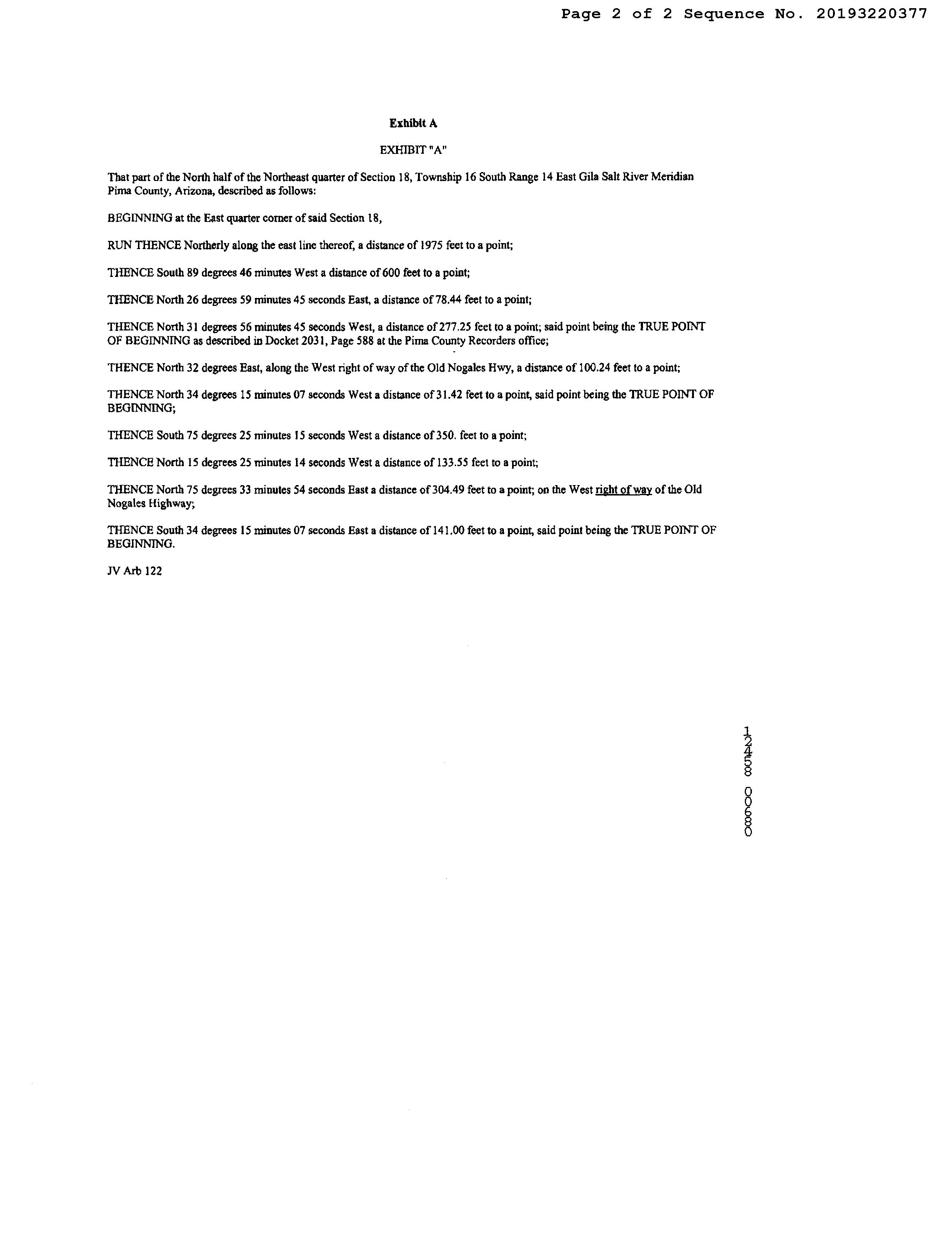 Legal Description : Ptn Of Southerly 141' Of Northerly 180' M/l Lyg W & Adj To Old Nogales Hwy In Ne4 Ne4 1.00 Ac Sec 18-16-14