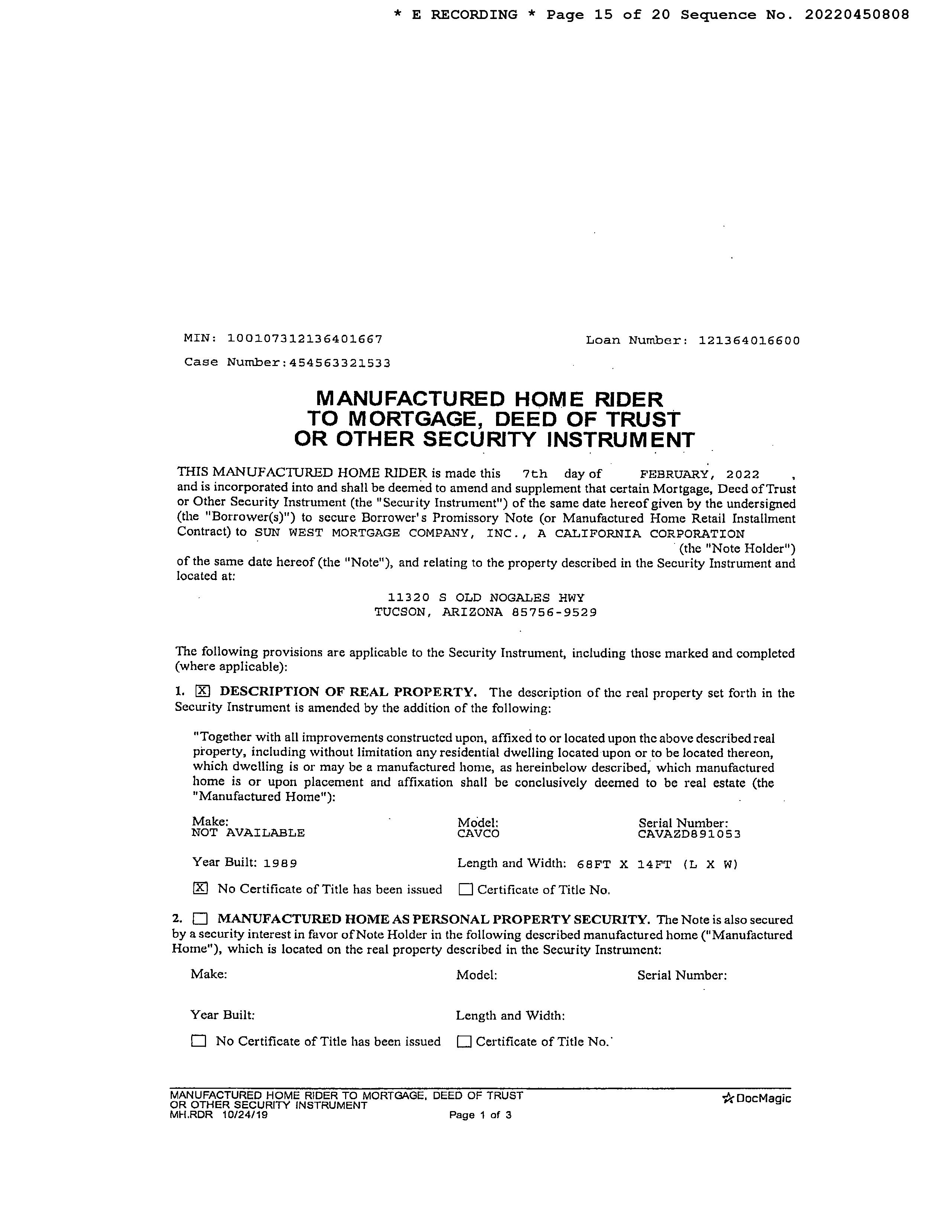 Property Information Land Use : Mobile Home Zoning : GR-1 Lot Size : 43,560 County Use : Single Fam Res Lot Acres : 1.00 State Use : Single Fam Res Tax Information Total Value : $328,741 Property Tax : $2,580.90 Current Year Total Value : $38,470 Total Taxable Value : $28,124 Tax Rate Area : 1200 Current Year Improvement Value : $38,420 Assessed Year : 2022 Market Value : $328,741 Current Year Land Value : $50 Tax Year : 2022 Current Assessed Year : 2023