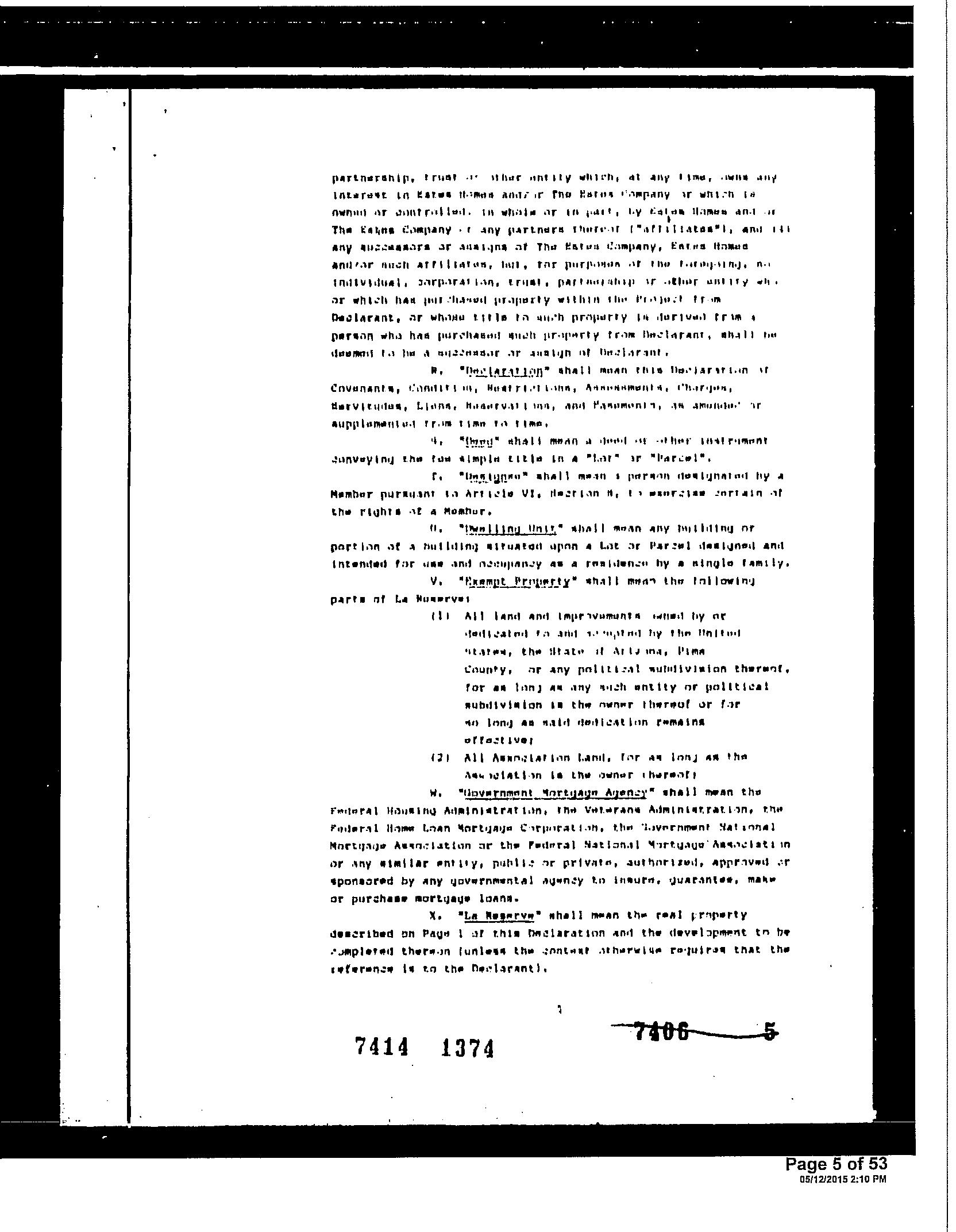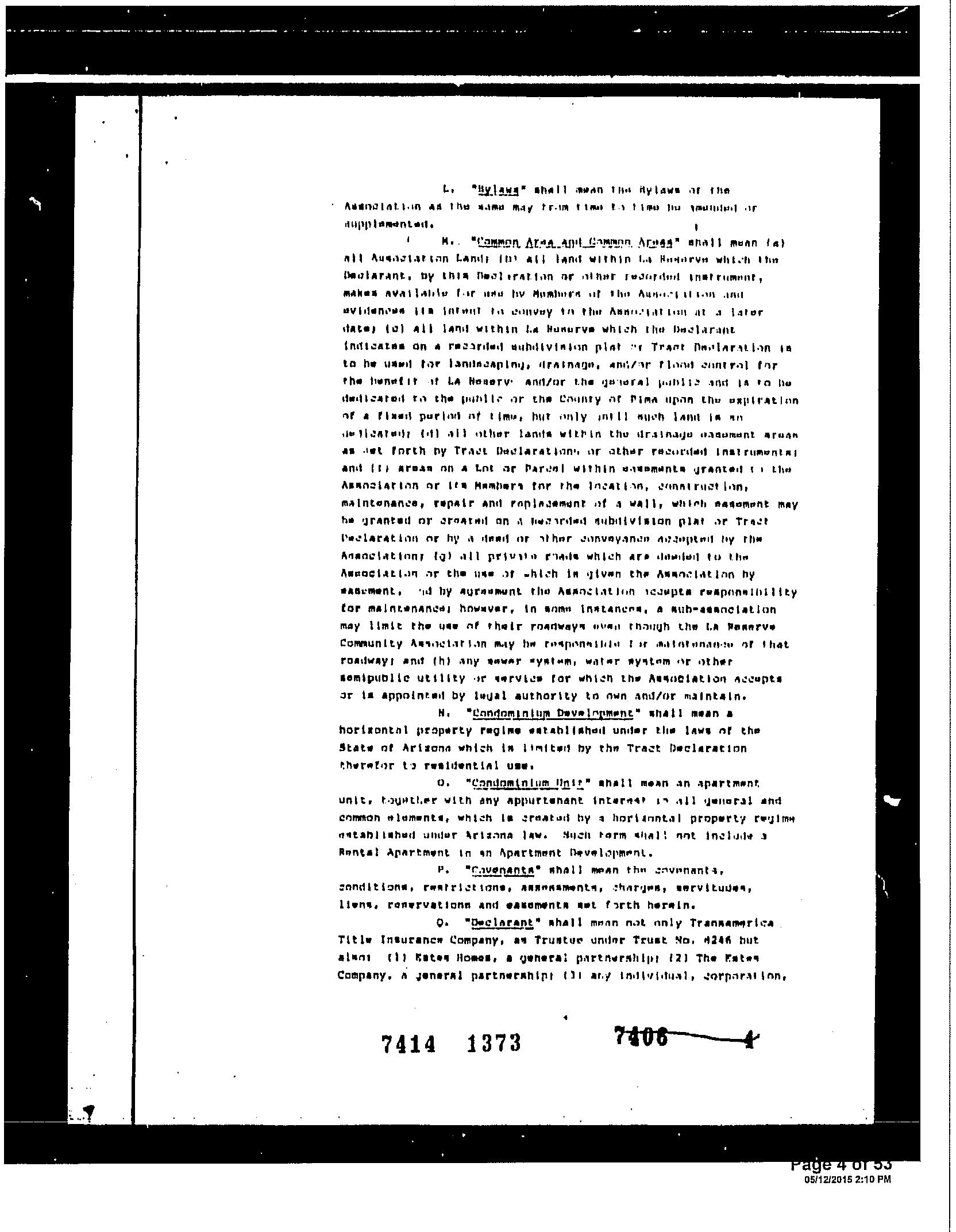 ©2021 First American Financial Corporation and/or its affiliates. All rights reserved. NYSE: FAF 05252610821 COVENANTS, CONDITIONS & RESTRICTIONS PREPARED FOR : First American Title Insurance Company, and the operating divisions thereof, make no express or implied warranty respecting the information presented and assume no responsibility for errors or omissions. First American, the eagle logo, First American Title, and firstam.com are registered trademarks or trademarks of First American Financial Corporation and/or its affiliates. 11344 North Gray Boulder Court Tucson, AZ 85737