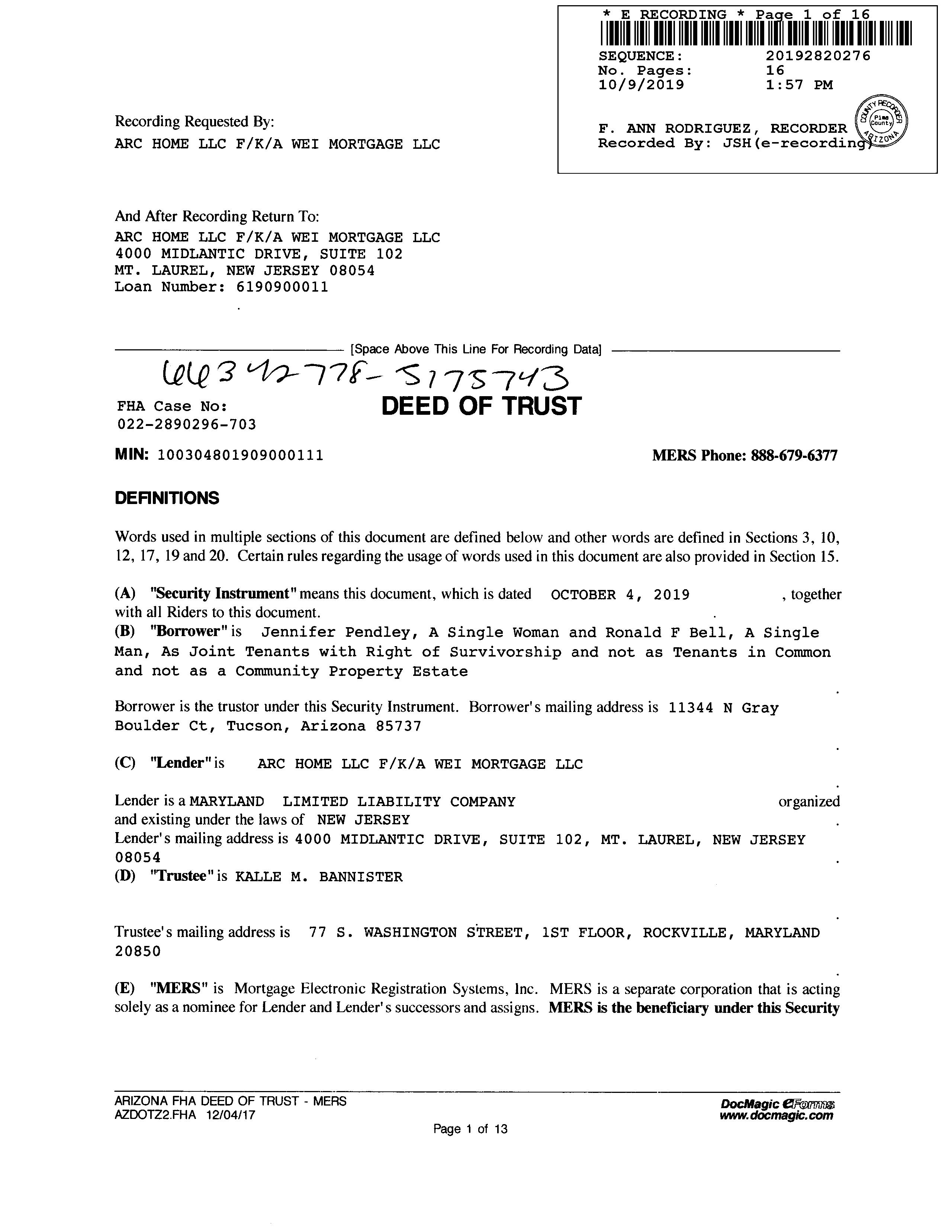 PIMA, AZ Document:DOT 2019.282.0276 Page:1 of 16 Printed on:2/1/2023 2:03 PM Branch :FC0 User :JSTI
