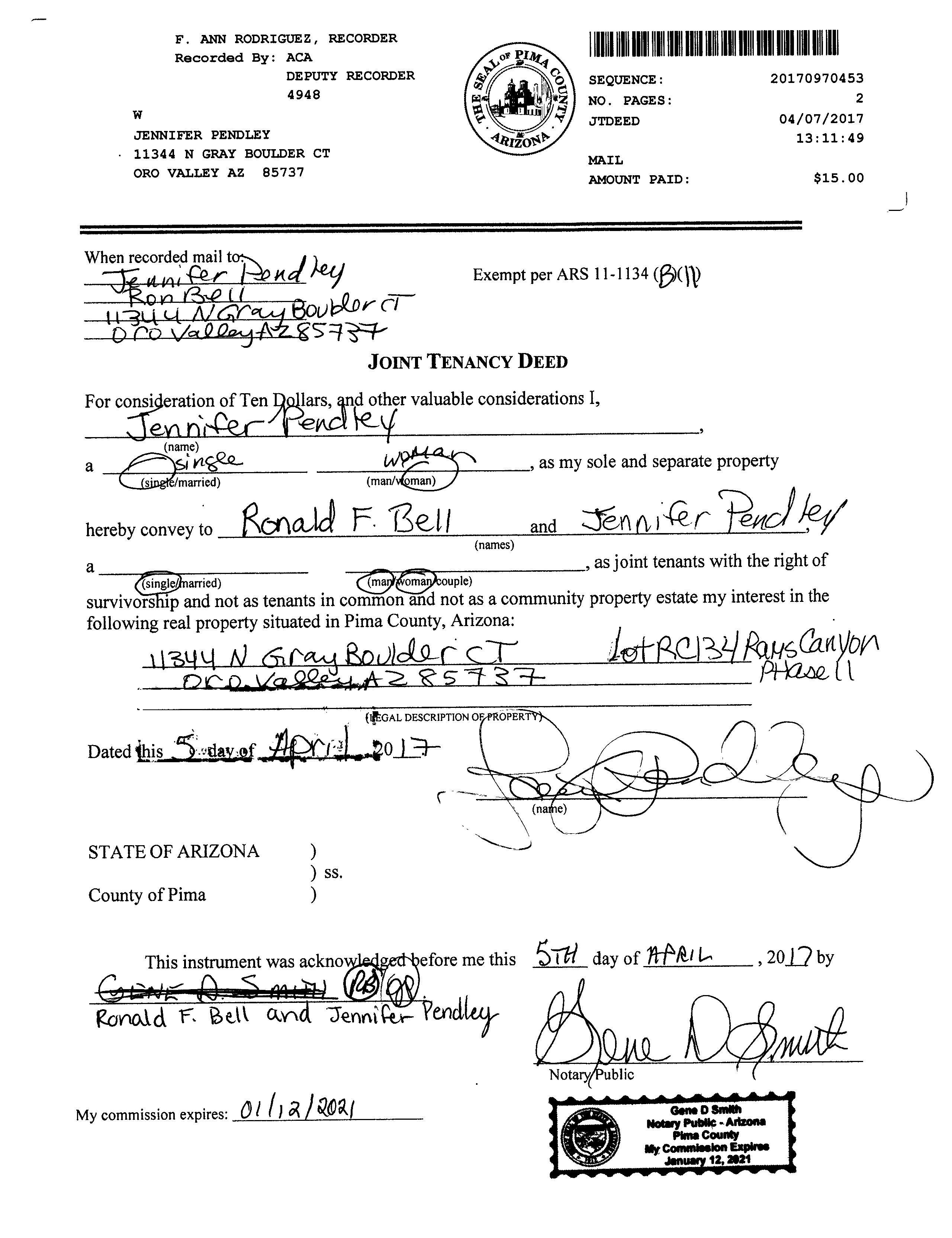 PIMA, AZ Document:DED JTN 2017.97.0453 Page:1 of 2 Printed on:2/1/2023 2:03 PM Branch :FC0 User :JSTI
