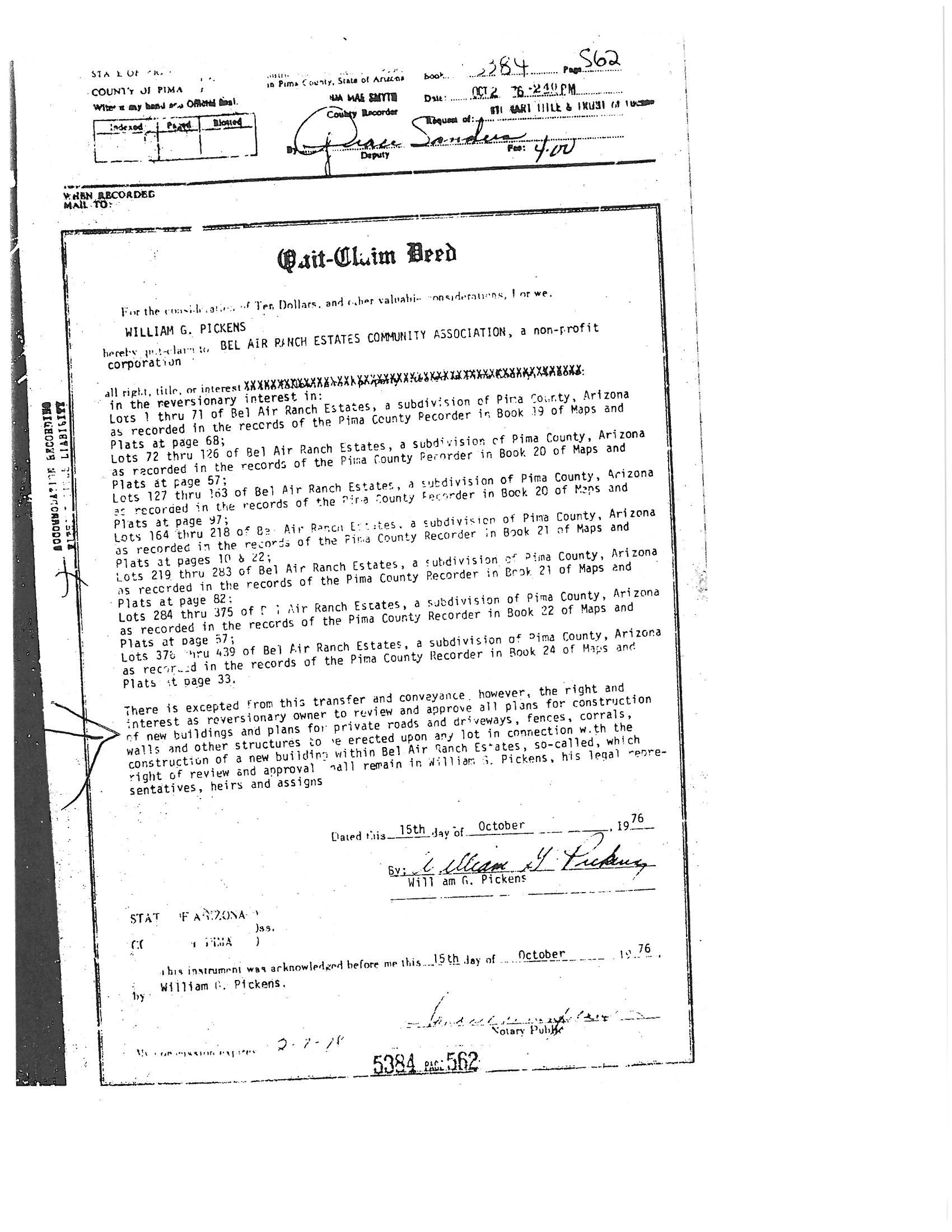 ConditionsCovenants,&Restrictions Thank you for the opportunity to be of service. Restrictions indicating a preference, limitation or discrimination based on race, color, religion, sex, handicap, familial status, or national origin are hereby deleted to the extent such restrictions violate 42 USC 3604(c). This information is furnished without fee and without benefit of a complete title search. No liability is assumed by First American Title or Title Security. If it is desired that liability be assumed, you may apply for a policy of title insurance with First American Title Insurance Company.