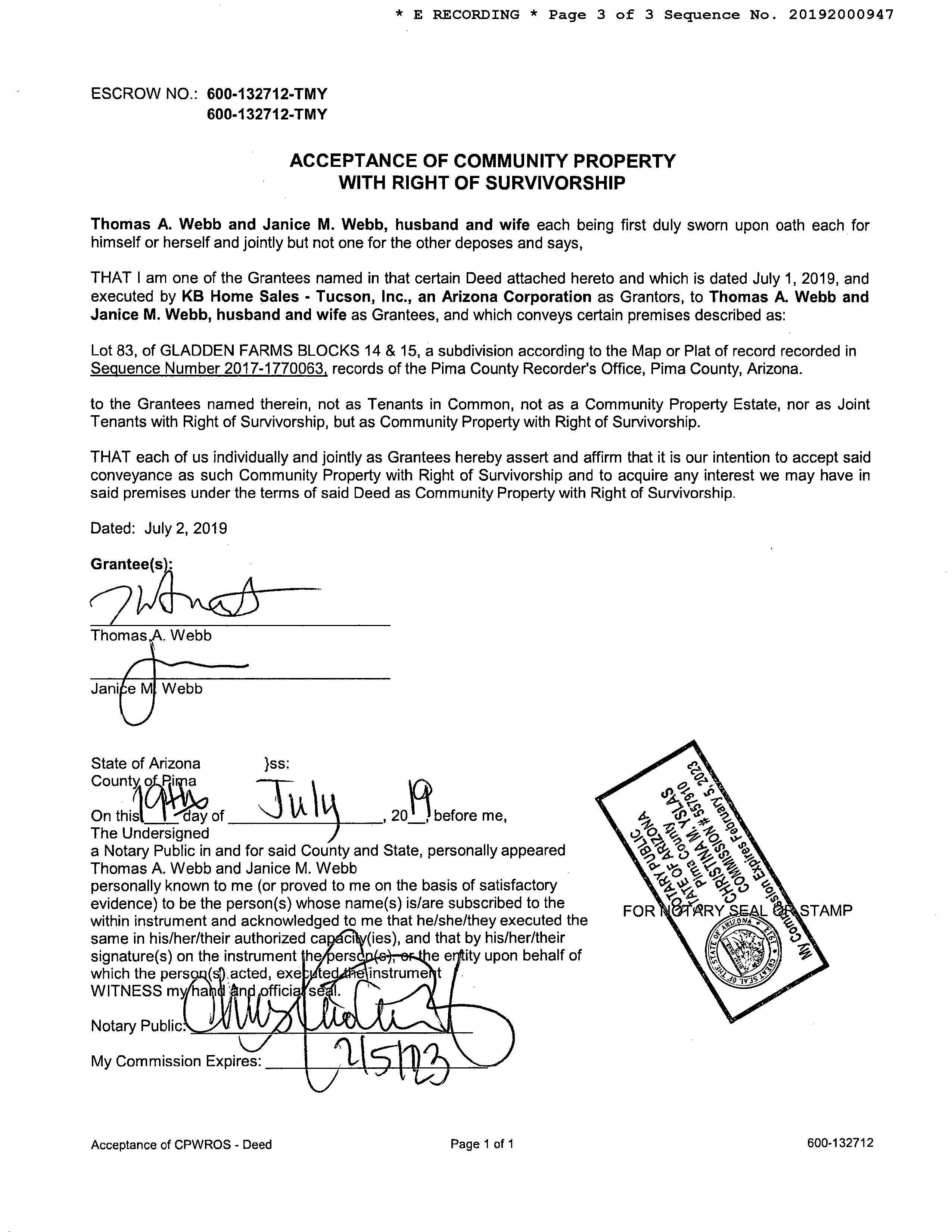 Owner Name: Webb Thomas A /Webb Janice M
