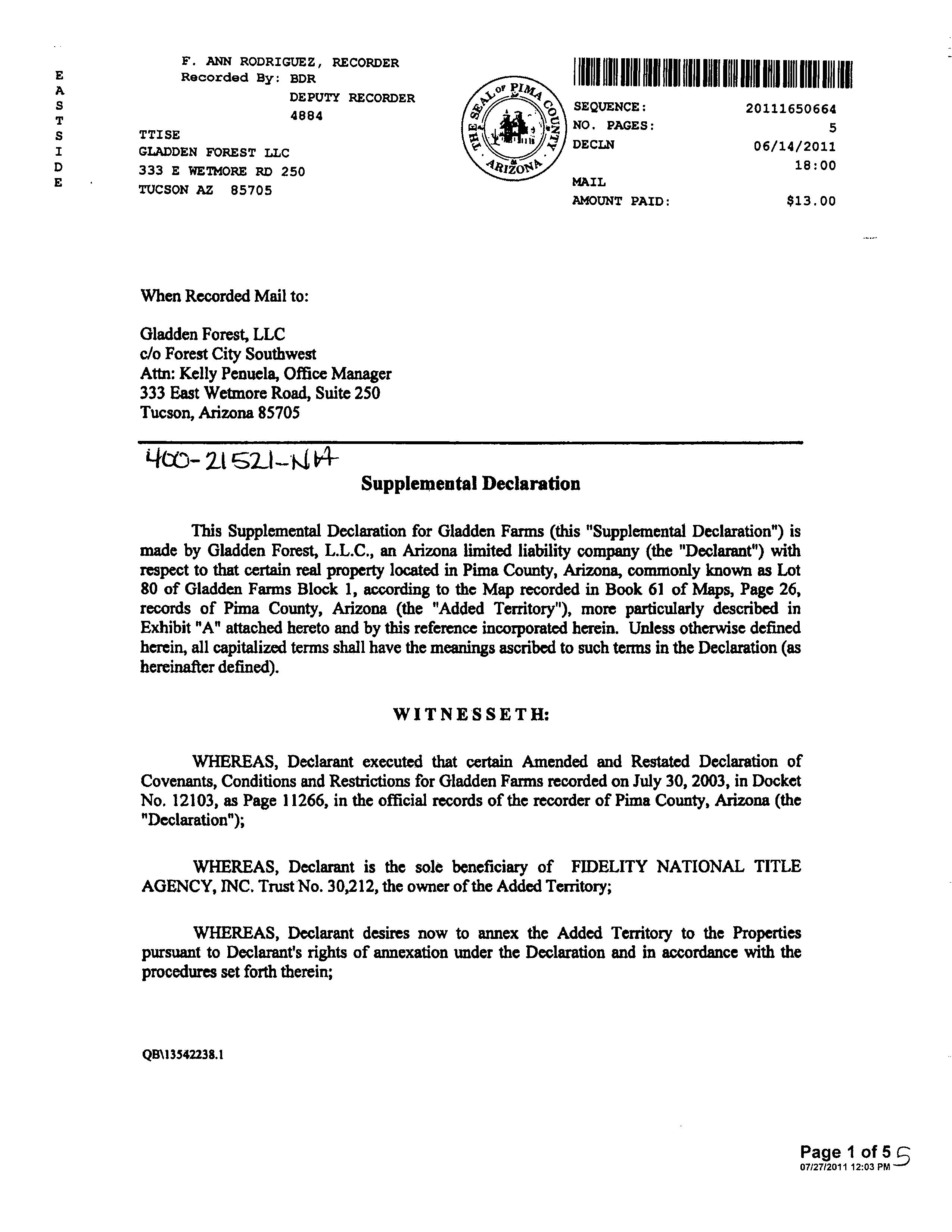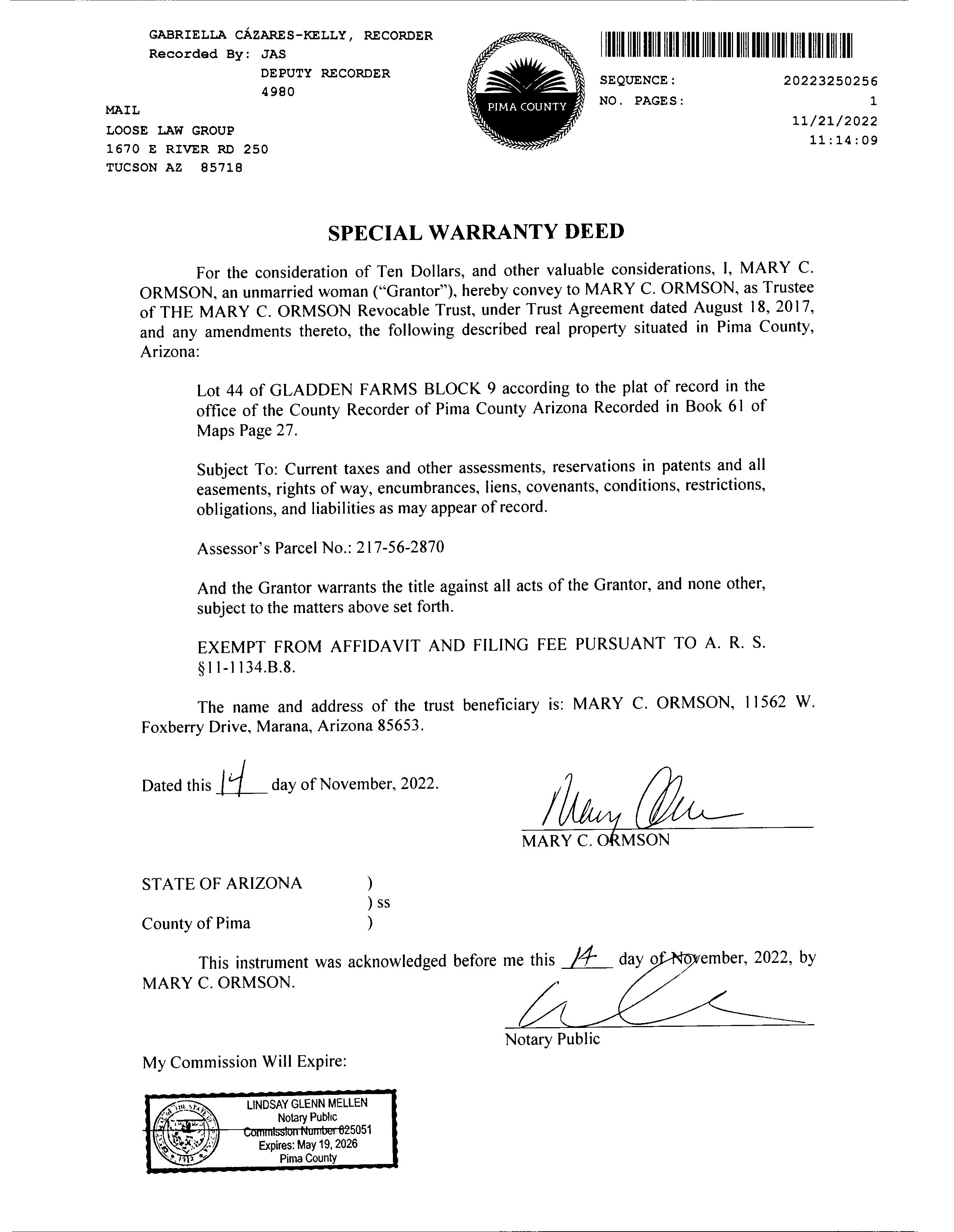 Mailing Address : 11562 W Foxberry Dr, Marana AZ 85653-7760 R004