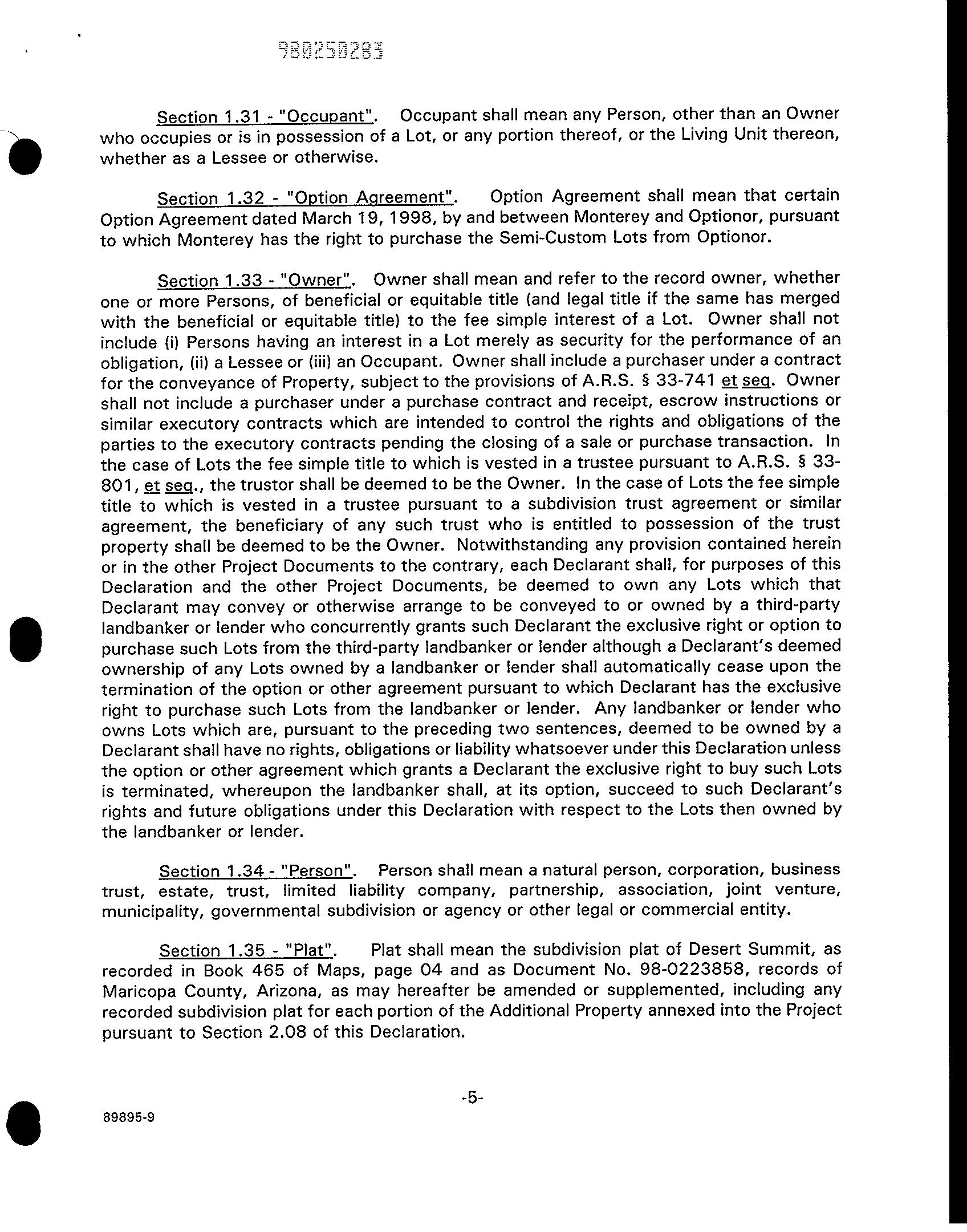 MARICOPA, AZ Document:RES 1999.557965 Page:5 of 65 Printed on:3/27/2024 12:09 PM Branch :FC0 User :JSTI