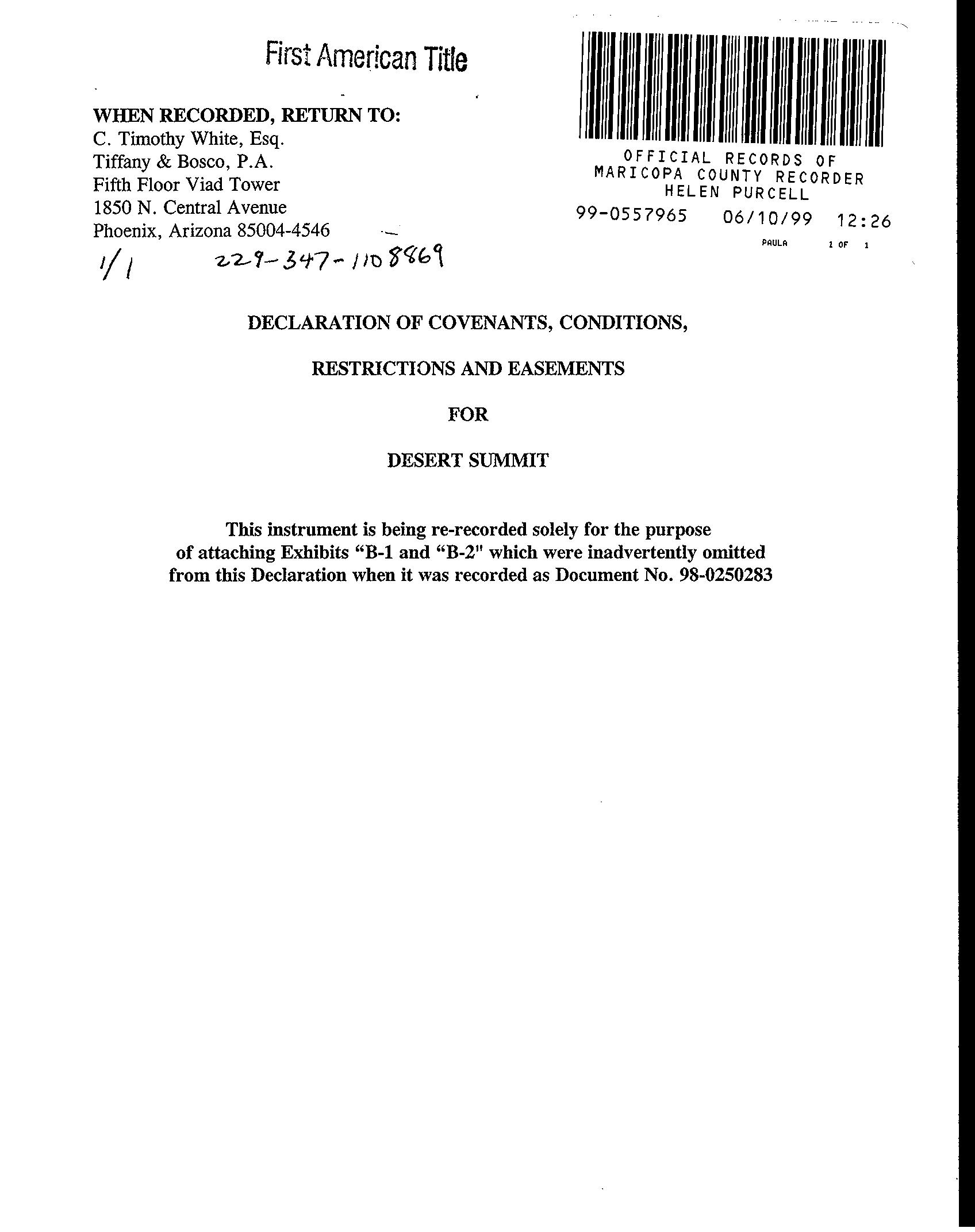 MARICOPA, AZ Document:RES 1999.557965 Page:1 of 65 Printed on:3/27/2024 12:09 PM Branch :FC0 User :JSTI