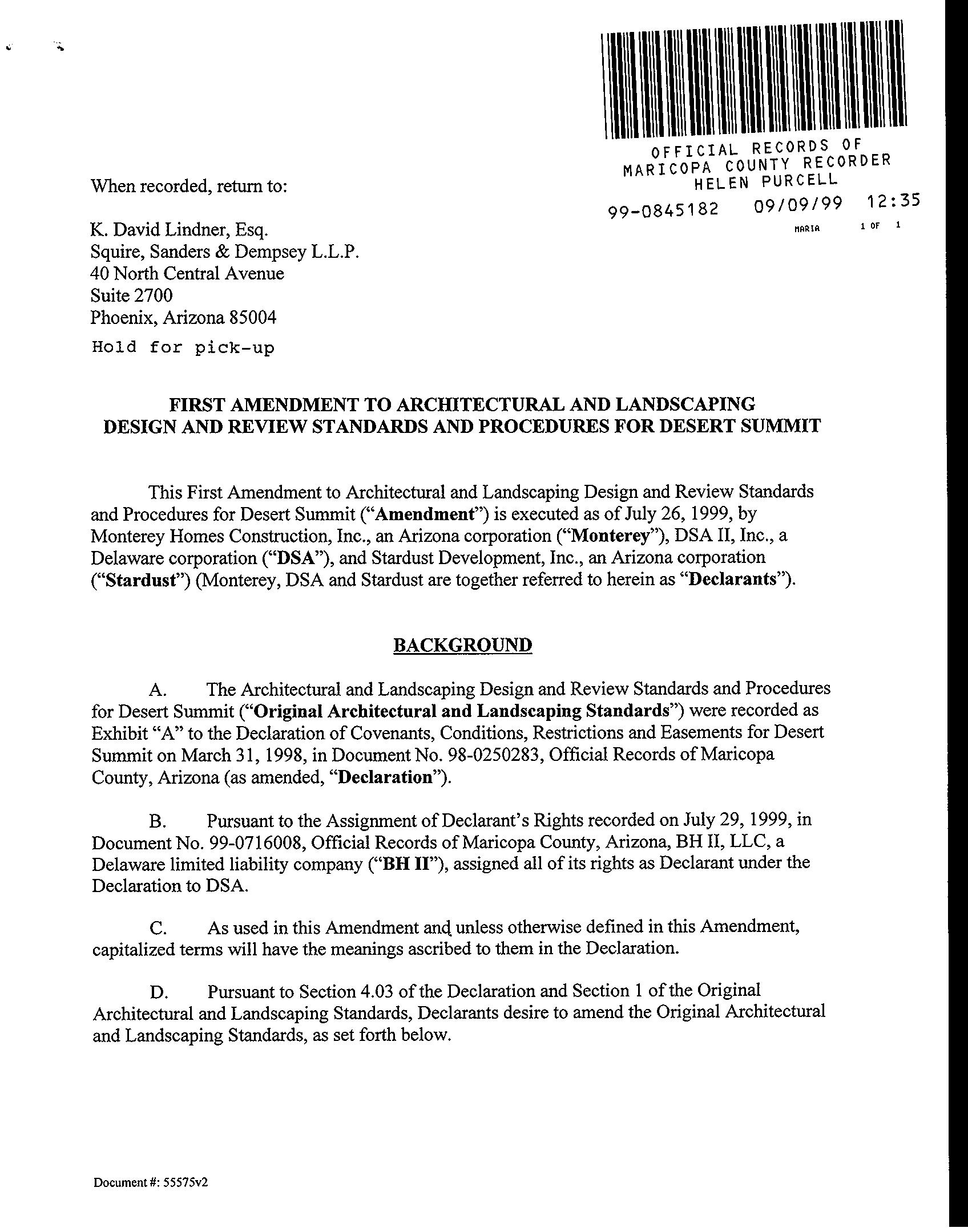 MARICOPA, AZ Document:RES AMD 1999.845182 Page:1 of 4 Printed on:3/27/2024 12:09 PM Branch :FC0 User :JSTI