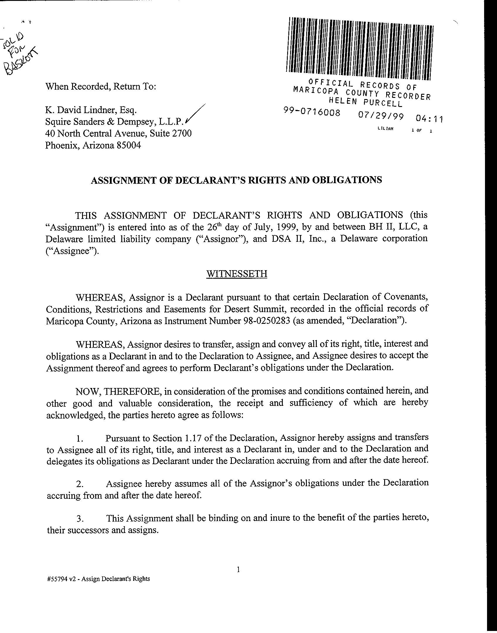 MARICOPA, AZ Document:RES ASN 1999.716008 Page:1 of 3 Printed on:3/27/2024 12:09 PM Branch :FC0 User :JSTI