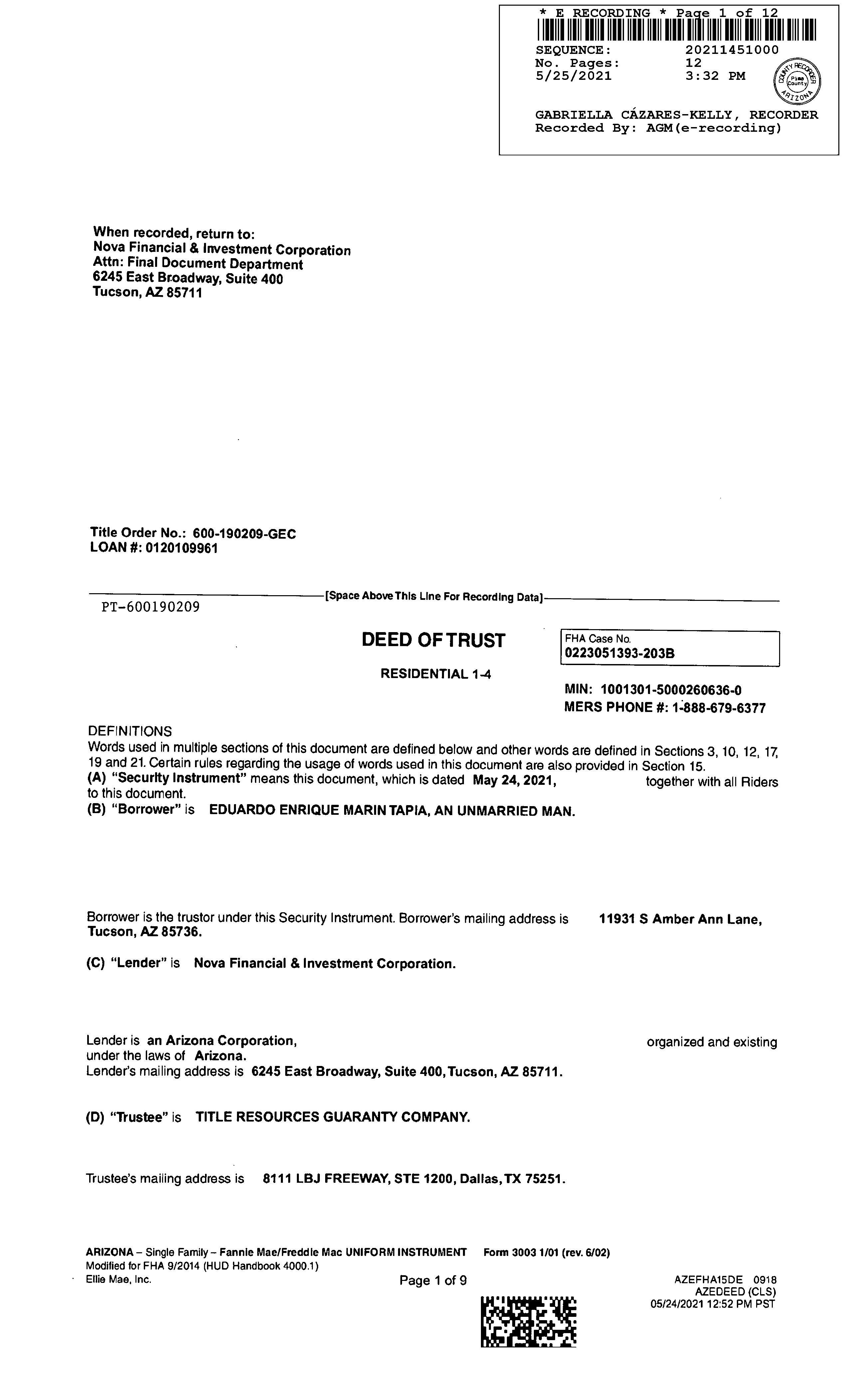 Owner Name: Tapia Eduardo Enrique Marin / APN / Alternate APN: 301-74-134B / Deed Type: Warranty Deed