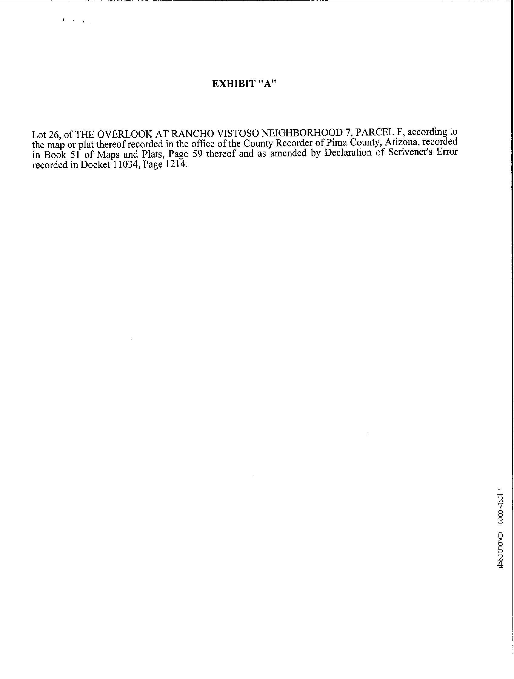 Legal Description : Overlook At Rancho Vistoso Neighborhood 7 Parcel F Lot 26