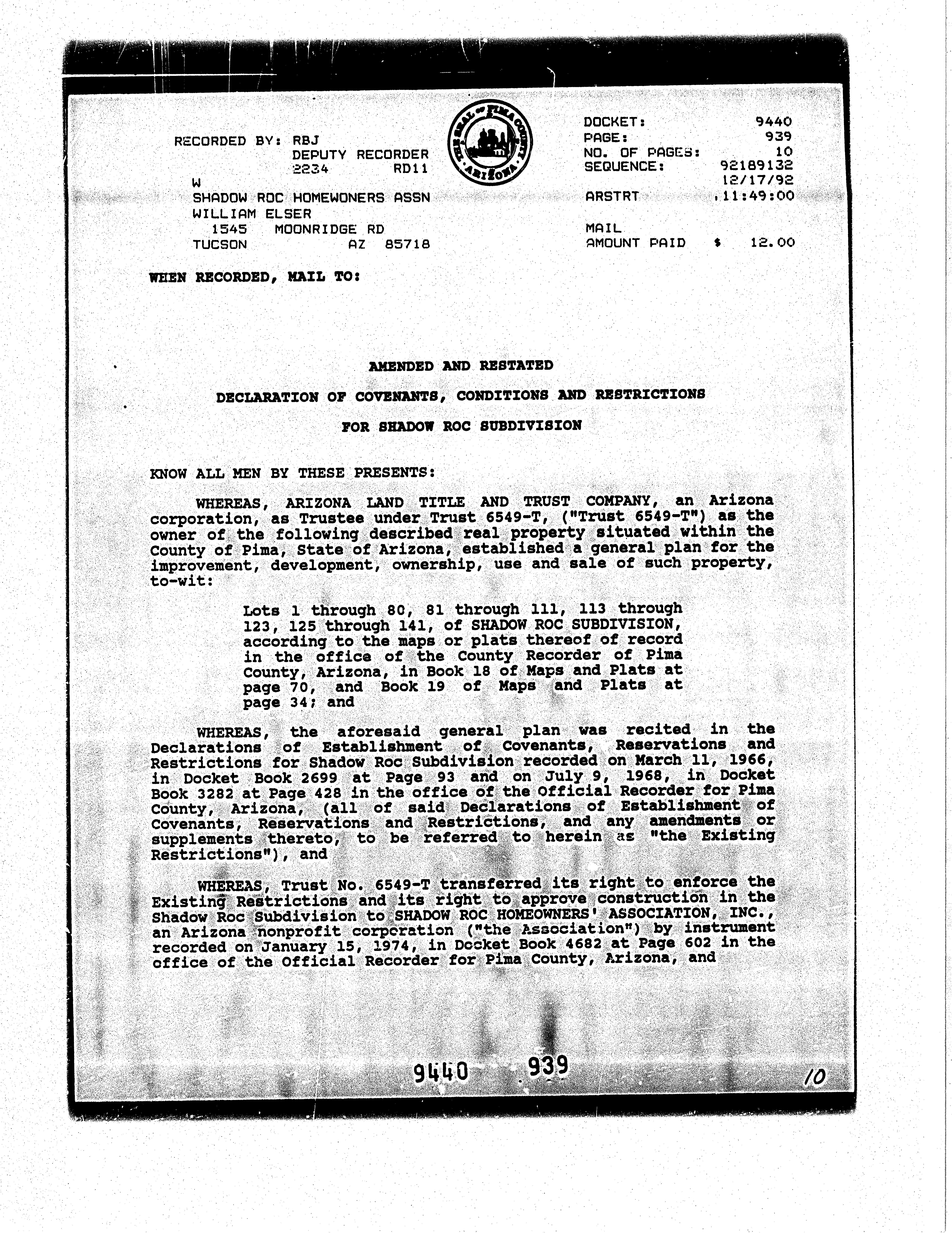 Mailing Address : 1220 E Moonridge Rd, Tucson AZ 85718-1188 R035