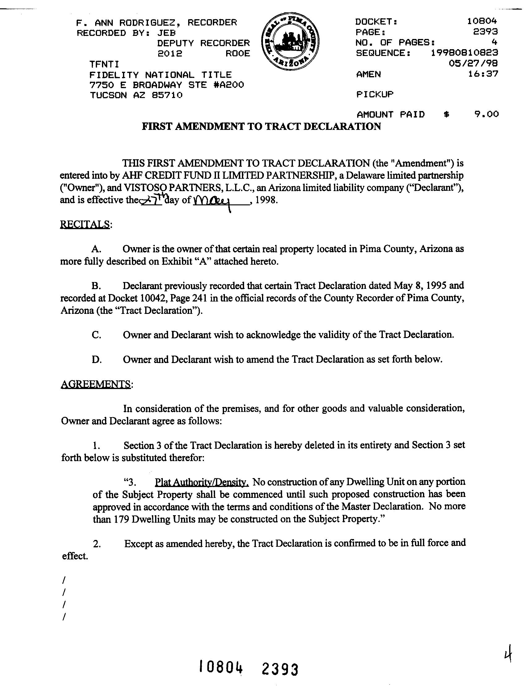 Prior Rec/Sale Date : 07/26/2013 / 07/18/2013