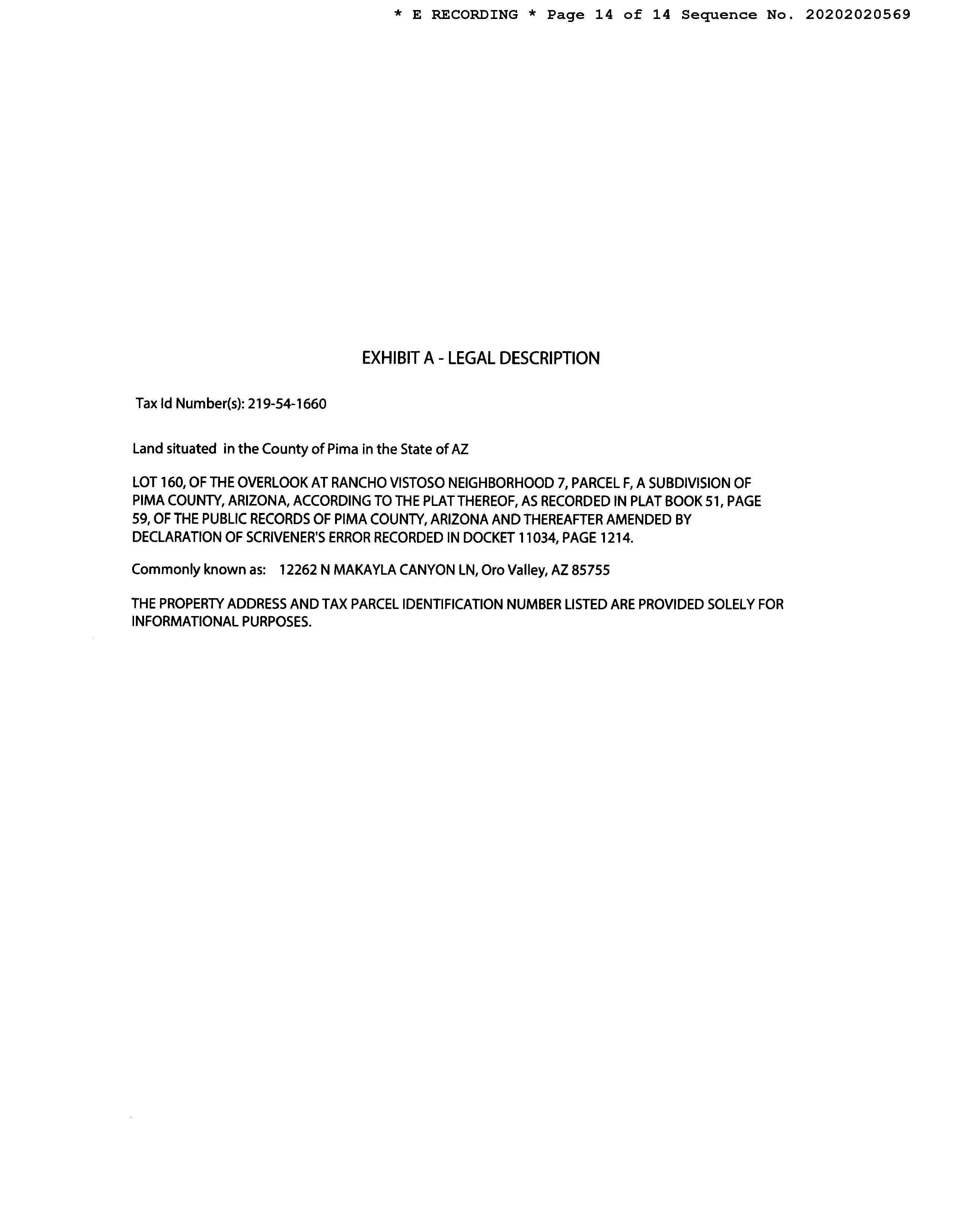 #1 12371 N Mesquite Crest Way Oro Valley Az 85755 Owner Name: Wright Brandon A /Frank Daiane L