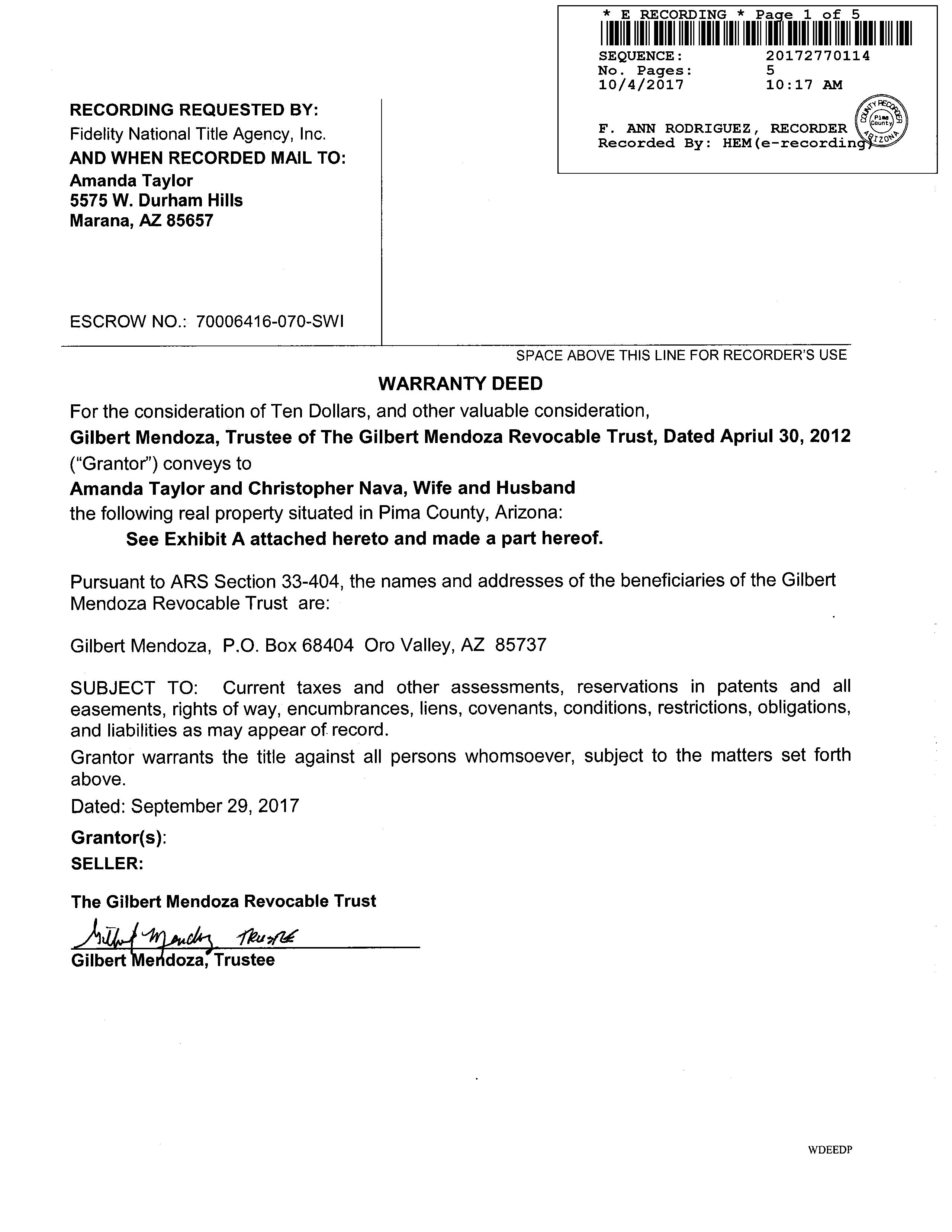 Seller Name : Mendoza Gilbert Trust