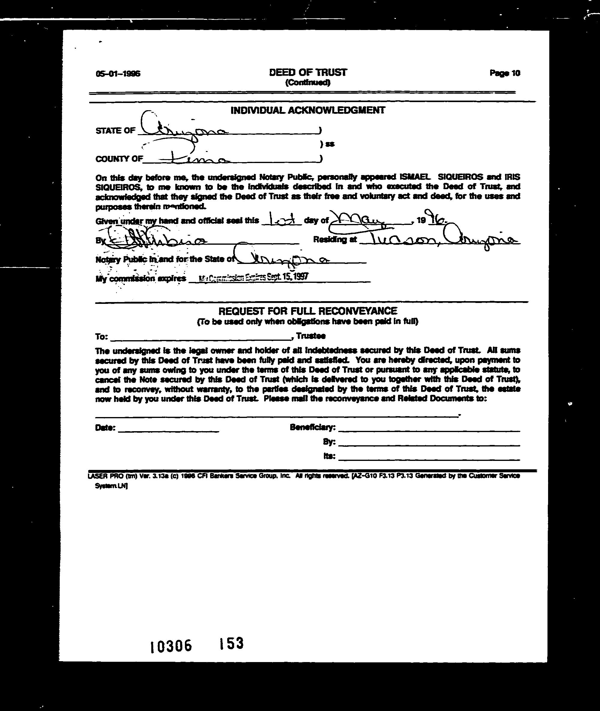 + FIRST AMERICAN TITLE, FC0, LMRA PIMA, AZ 08/19/2022 01:51PM RL13 INVESTIGATIVE SEARCH RESULTS PAGE 1 OF 1 SEARCH PARAMETERS PARCEL: 140-24-1290 PARCEL: 140-24-1290 INSTRUMENT REC DATE OWNER: SIQUEIROS ISMAL & IRIS JT/RS 10306 141 05/31/1996 SITUS: 1227 E GINTER RD TUC MAIL: 5956 S AVENIDA CANECA TUCSON AZ 85706-5075 PLAT: LOT 00018 BLOCK 002 LEGAL: AIRPORT PARK BLOCKS 1 & 2 LOT 18 BLK 2 CURRENT TAXES INFORMATION THROUGH 07/28/2022 LAND IMPR EXEMPT RATE AREA SPECIAL DISTRICTS PRIMARY 4,047 0 0 9.6927 1250 SECONDARY 1,900 2,147 0 3.4043 2021 TOTAL TAX BILLED 530.06 2021 TAX AMT TAX DUE INTEREST DATE PAID TOTAL DUE FIRST HALF 265.03 0.00 0.00 05/28/2022 0.00 SECOND HALF 265.03 0.00 0.00 05/28/2022 0.00 TOTAL CURRENT TAXES DUE 08/22 0.00 09/22 0.00 IMPROVEMENTS MOBILE HOME PHYSICAL CONDITION ABOVE AVERAGE BLDG SQFT 443 FULL CASH VALUE 40,468 YEAR BUILT 1969 LAND USE 08 29 NUMBER OF STORIES 1.0 LOT SIZE 1 STDLT STORIES HEIGHT 0 SCHOOL DISTRICT 1250 EXTERIOR WALLS OTHER LAND FULL CASH VALUE 19,000 GRADE MATERIALS IMPR FULL CASH VALUE 21,468 SALES SALE DATE SALE AMOUNT INSTRUMENT TYPE SELLER NAME VALIDITY 05/31/1996 24,200 10306 141 JD ECCLESIA FOUNDATION ADDITIONAL PROPERTY INFORMATION STANDARD LAND USE: MOBILE HOME LOT END SEARCH