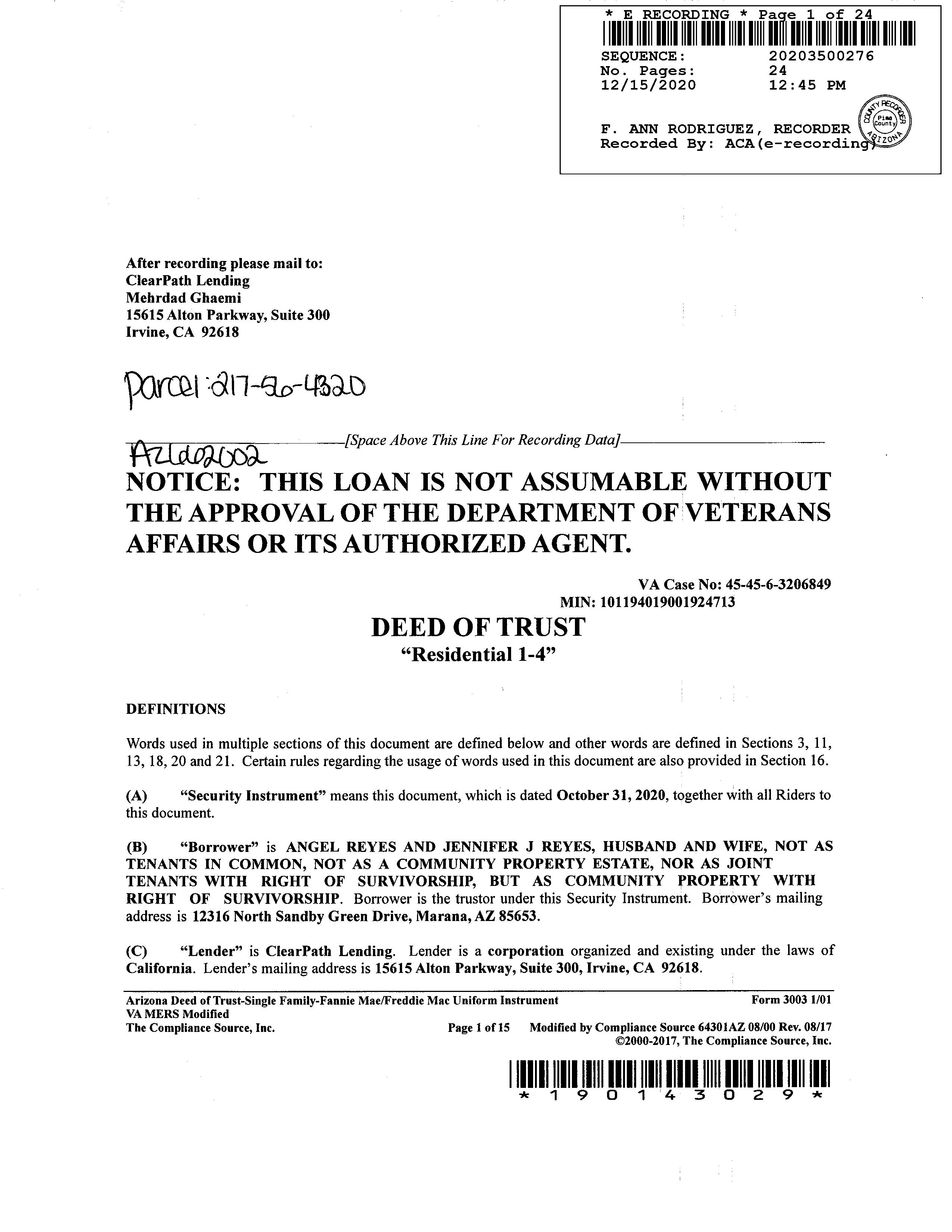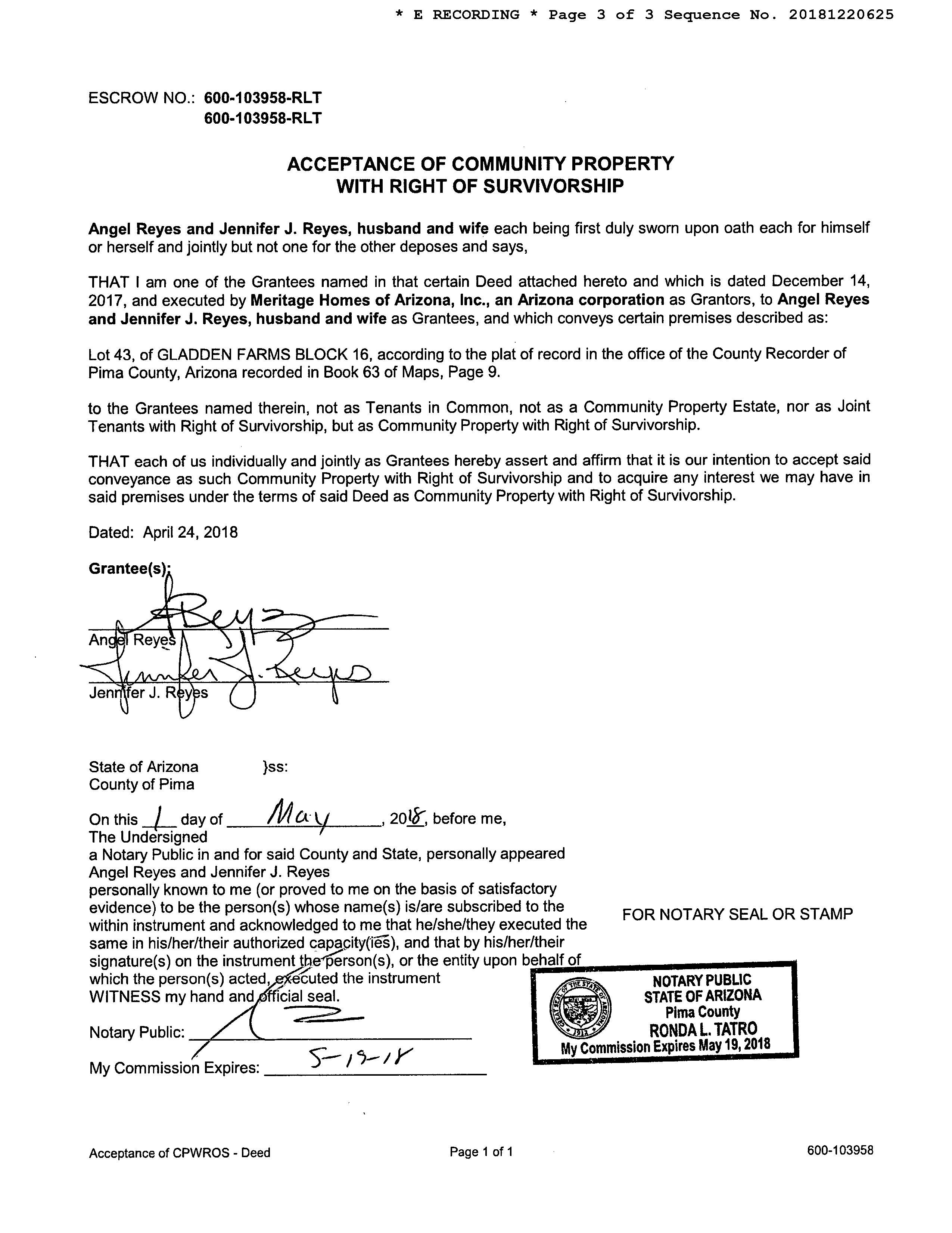 Owner Name: Reyes Angel /Reyes Jennifer J