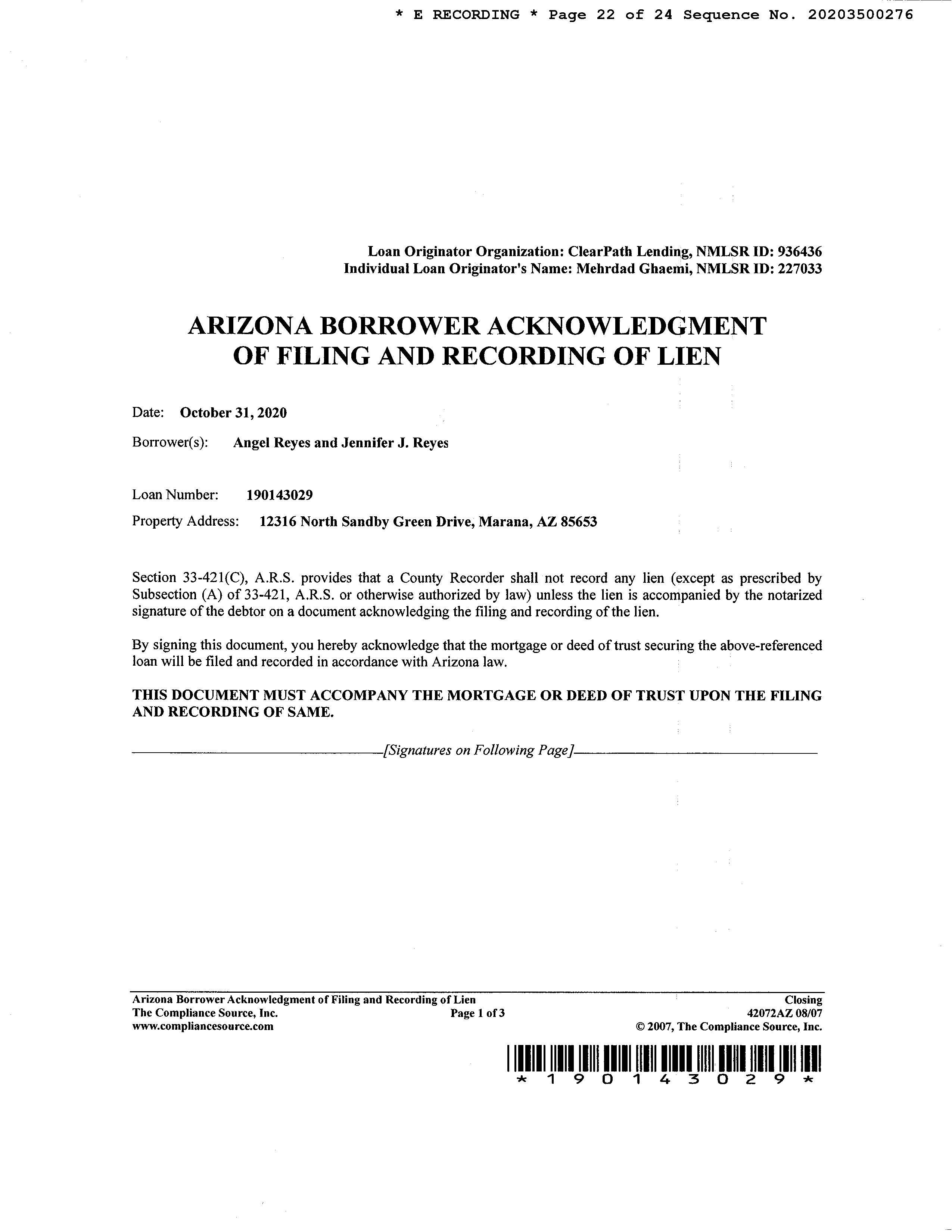 Seller Name : Meritage Homes Of Arizona Inc