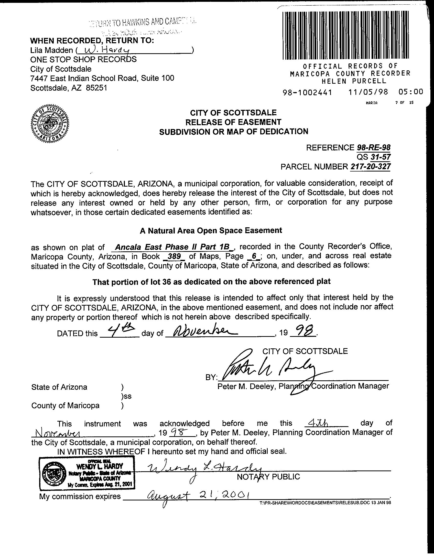 MARICOPA, AZ Document:EAS REL 1998.1002441 Page:1 of 1 Printed on:3/8/2024 11:34 AM Branch :FC0 User :JSTI