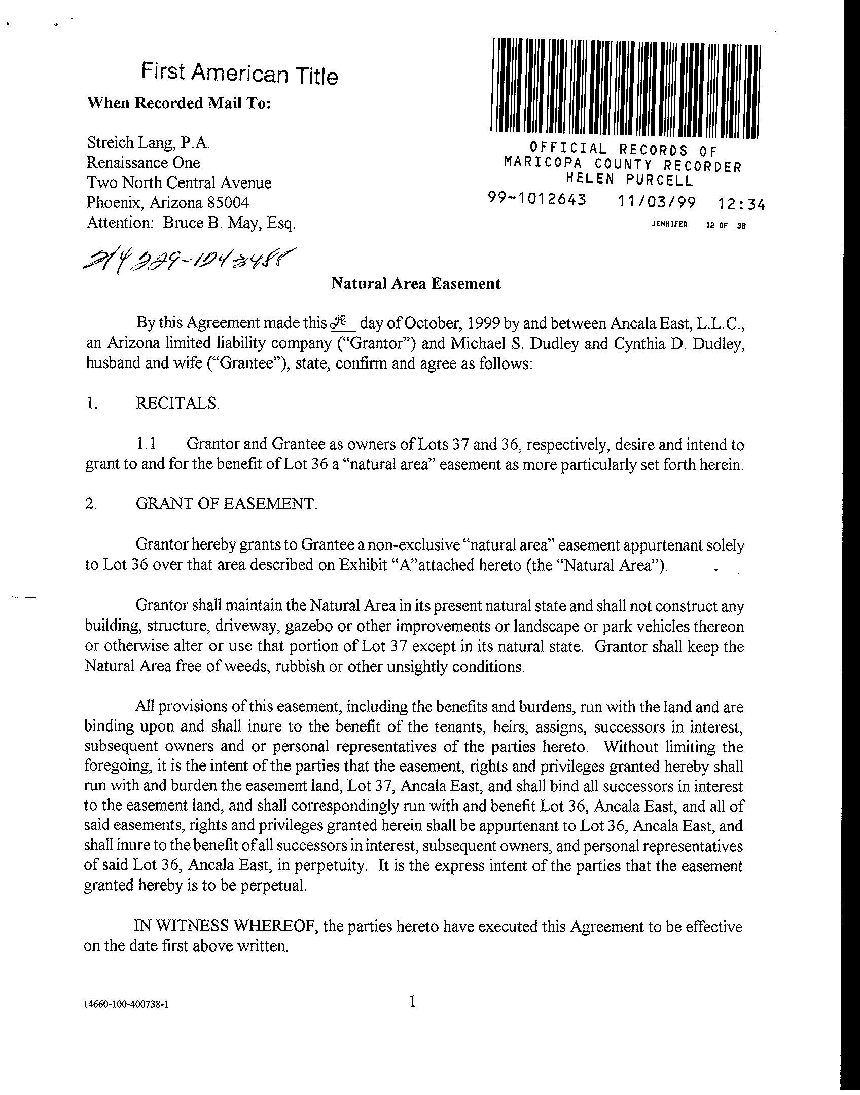MARICOPA, AZ Document:EAS 1999.1012643 Page:1 of 5 Printed on:3/8/2024 11:34 AM Branch :FC0 User :JSTI
