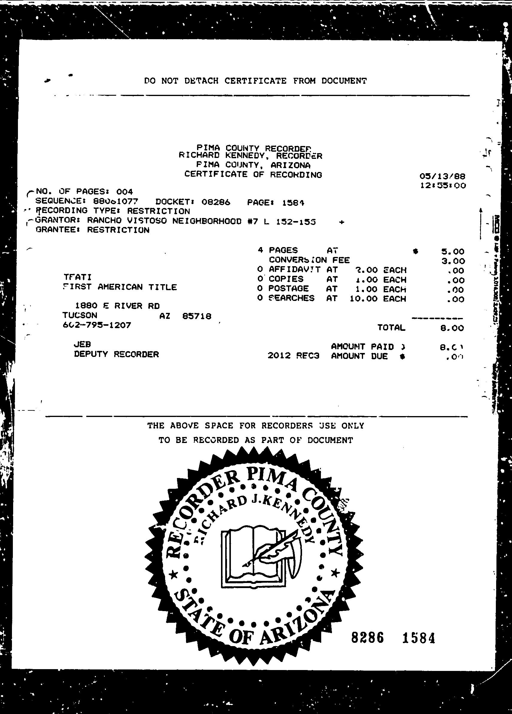 Prior Rec/Sale Date : 07/31/1996