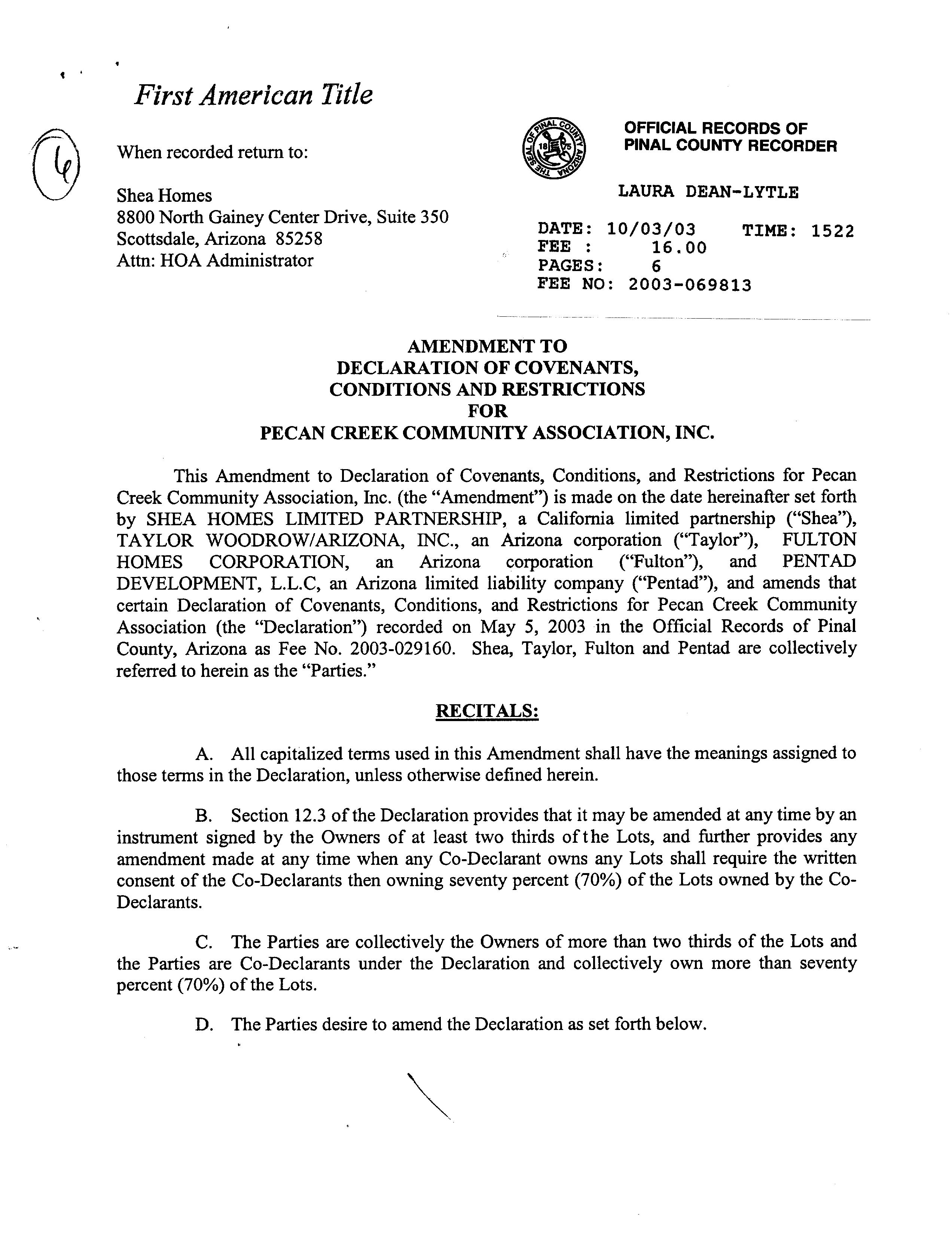 PINAL (PL), AZ Document:RES AMD 2003.69813 Page:1 of 6 Printed on:3/9/2023 11:25 AM Branch :FC0 User :JSTI