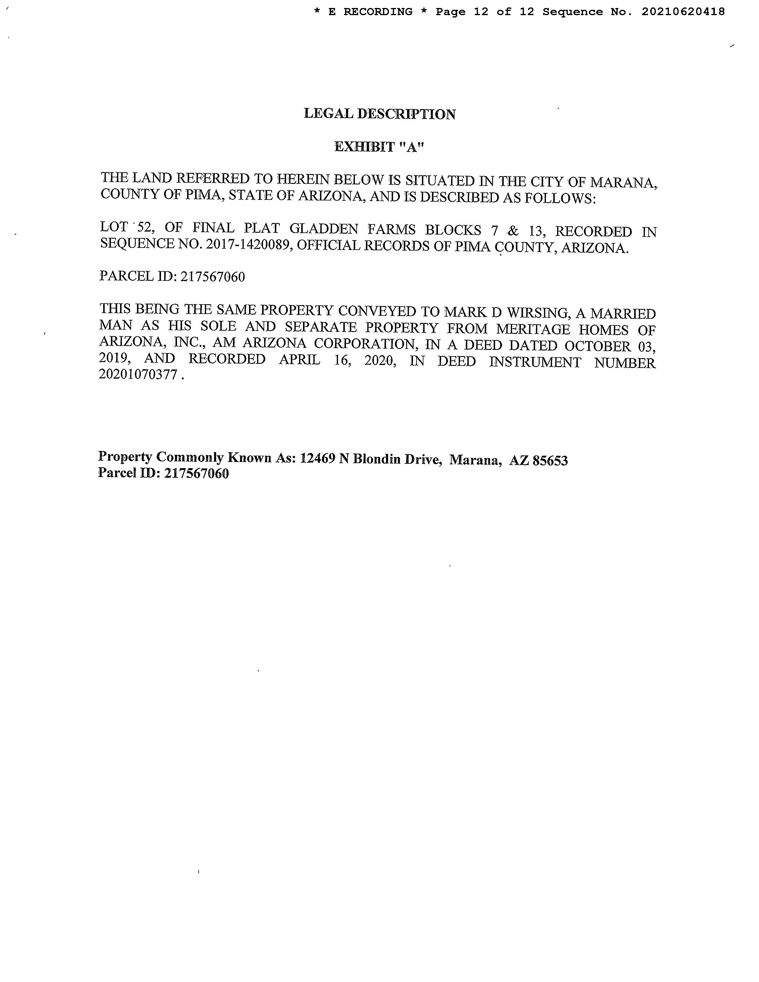 12469 N Blondin Dr Marana AZ 85653 APN: 217-56-7060