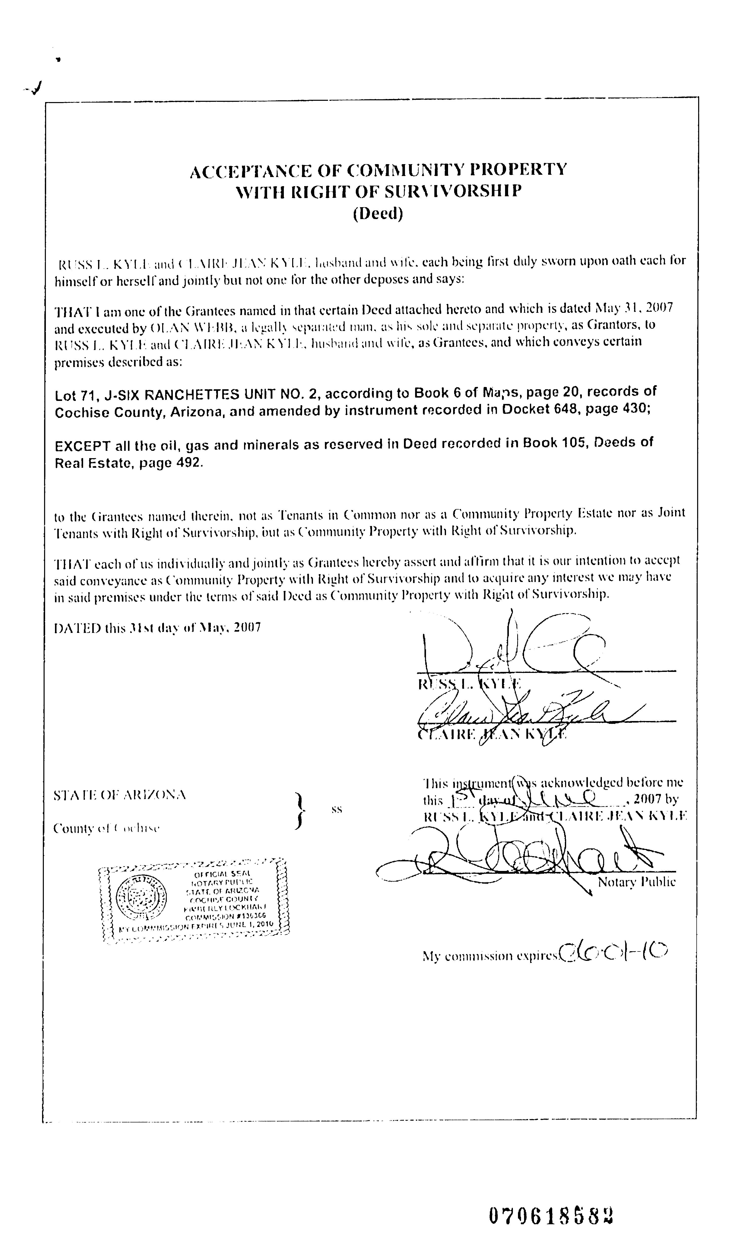 Subject Property:  Az Owner Name: Kyle Russ L /Kyle Claire Jean