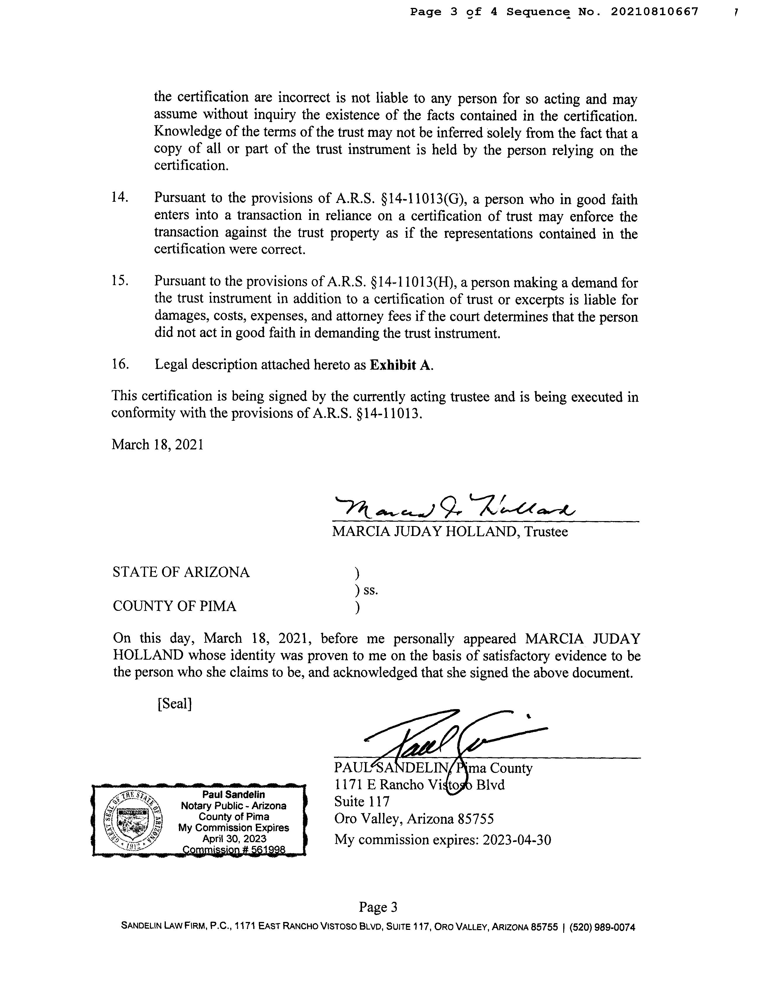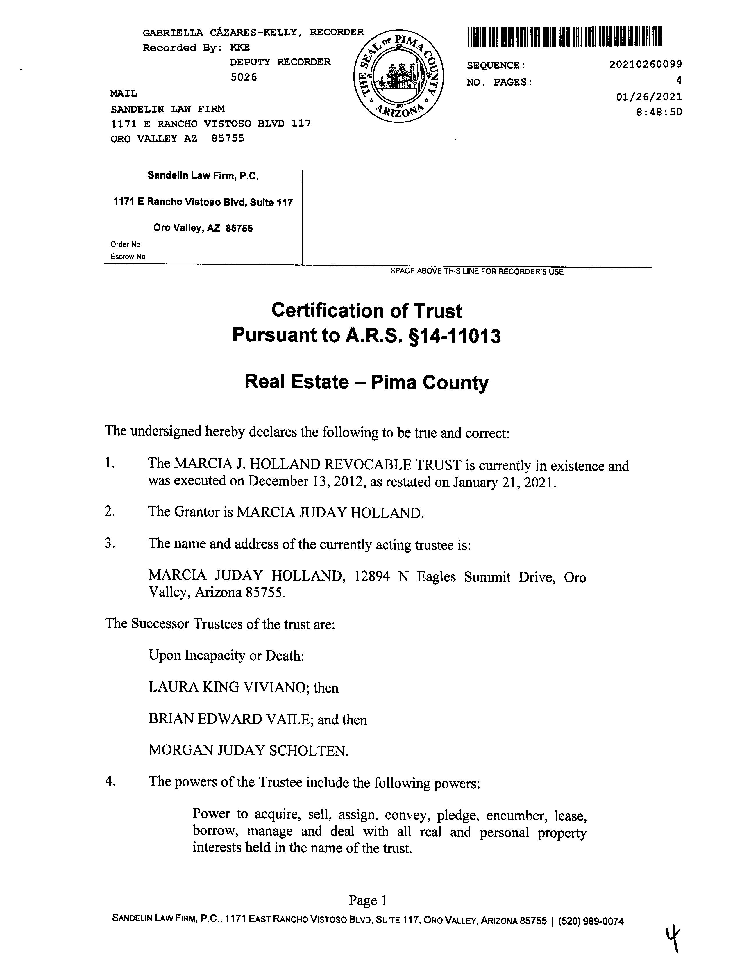 Owner Name: Holland Marcia J / APN / Alternate APN: 219-50-4540 / Deed Type: Special Warranty Deed Land Use: 163