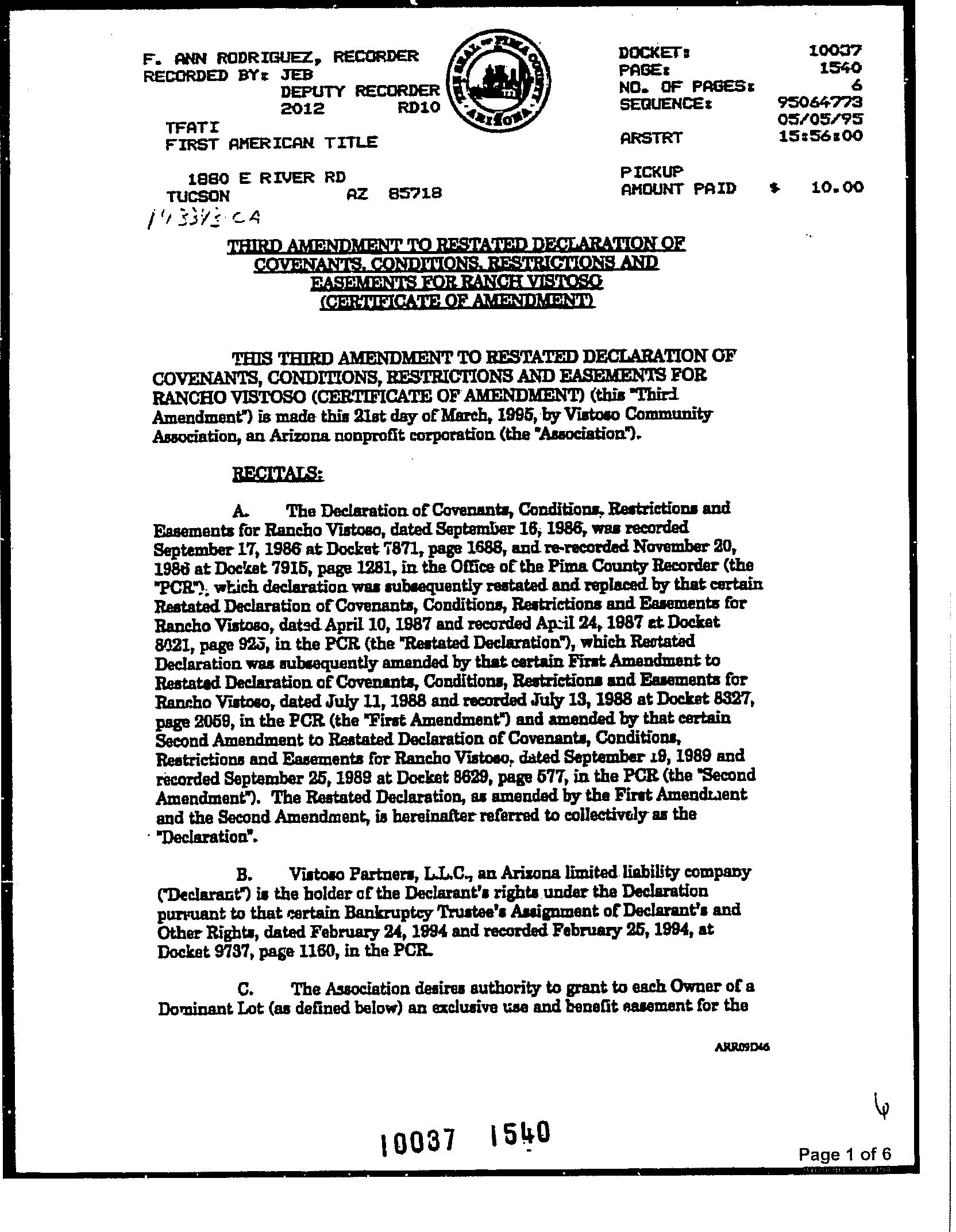 Census Tract / Block : 46.41 / 2 Subdivision : Rancho Vistoso Nbrhd 07