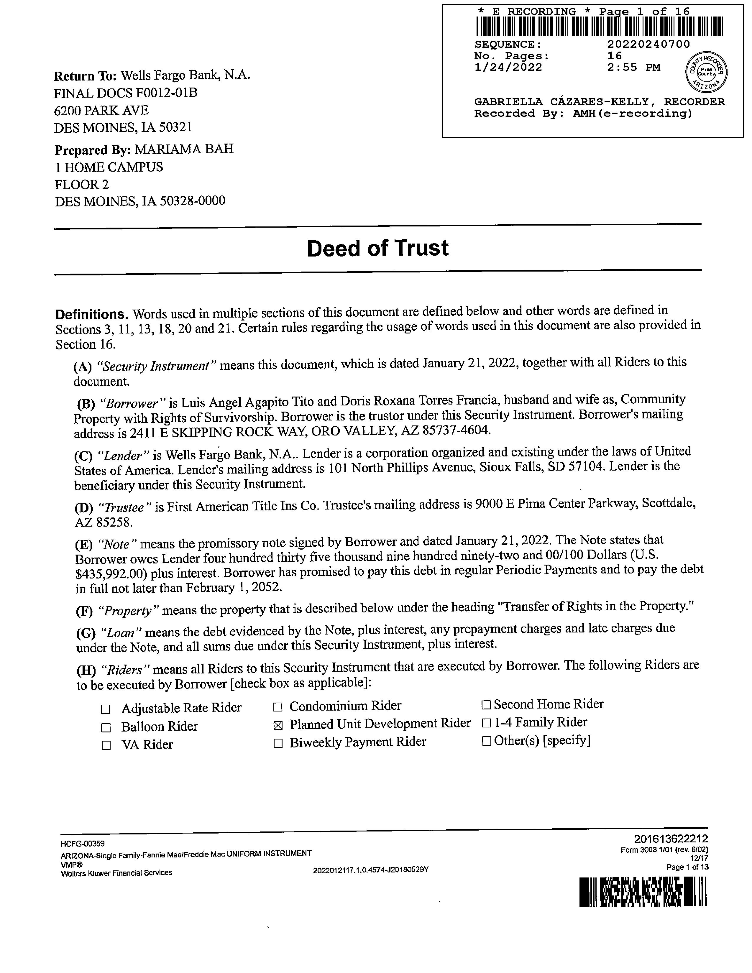 Owner Name: Trut Ferrara Trust / APN / Alternate APN: 219-54-3450 / Deed Type: Warranty Deed Land Use: Sfr