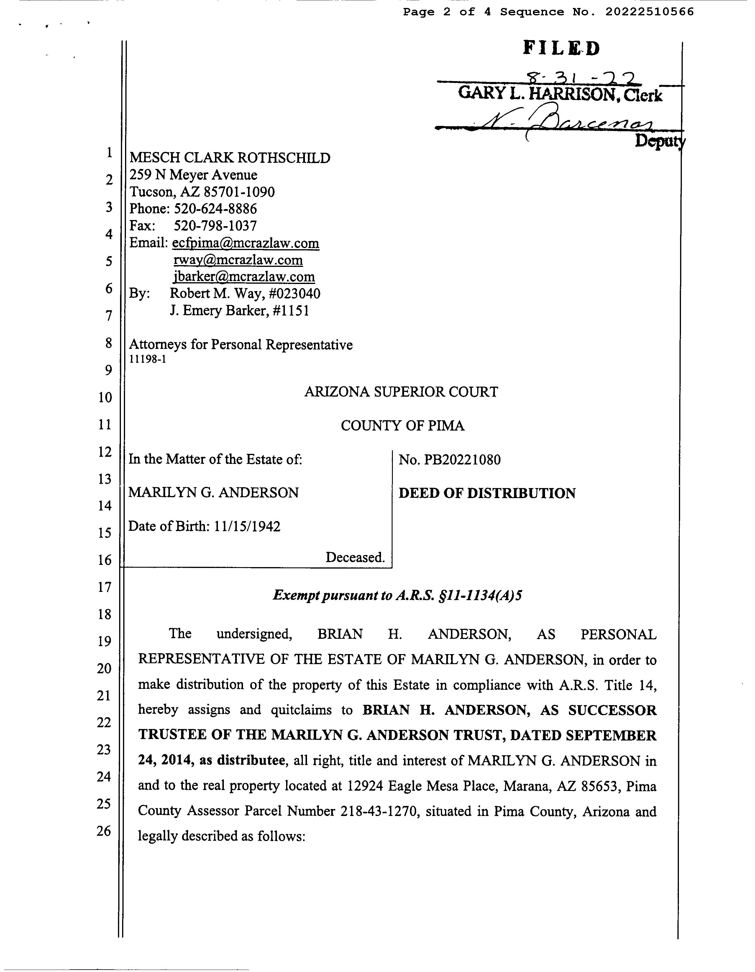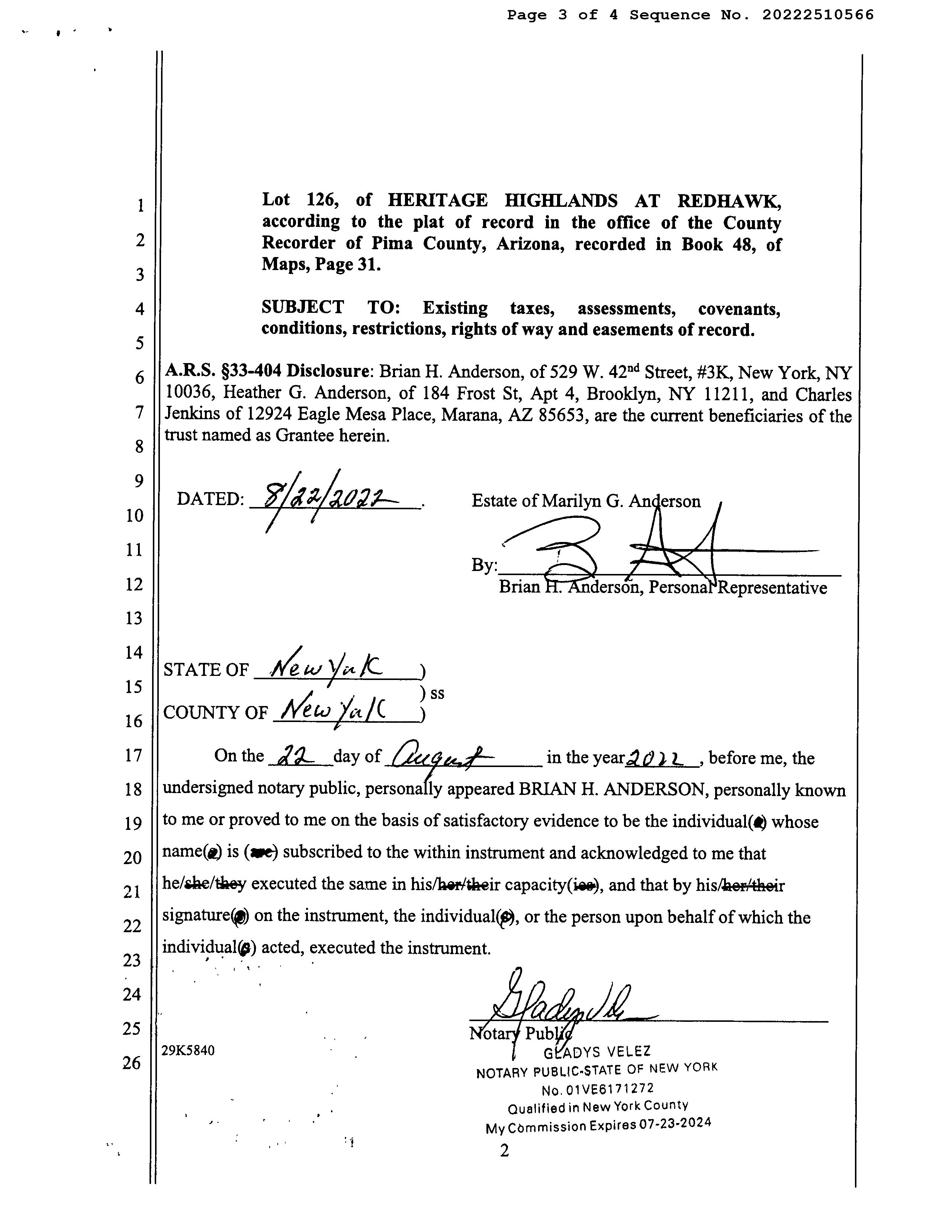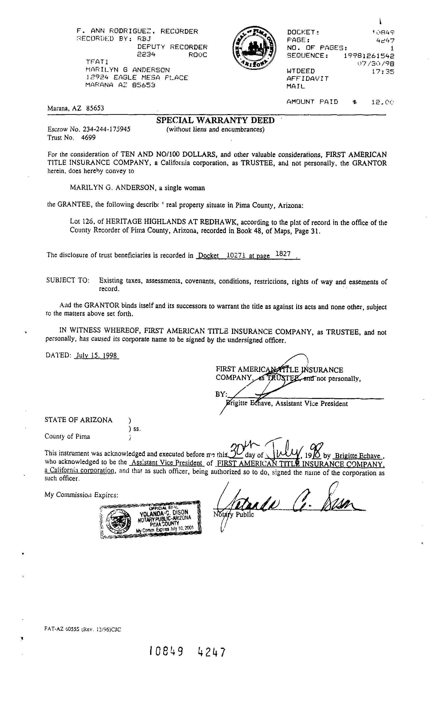 #12 12895 N Suizo Mountains Rd Marana Az 85658 Owner Name: Casagrande Heather /