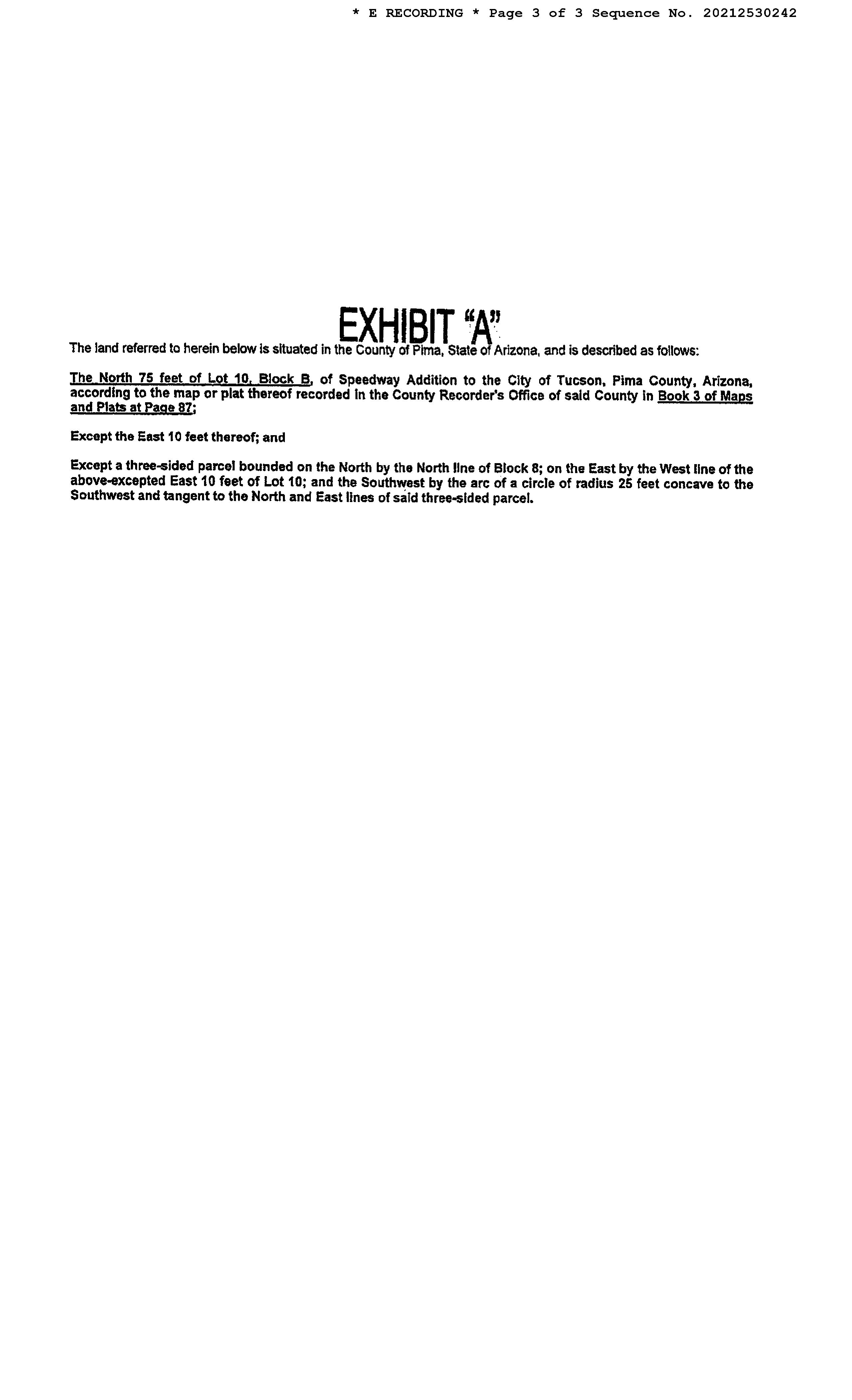 Legal Description : Speedway N75' Lot 10 Exc E10' & Exc Spdrl In Ne Cor Blk 8