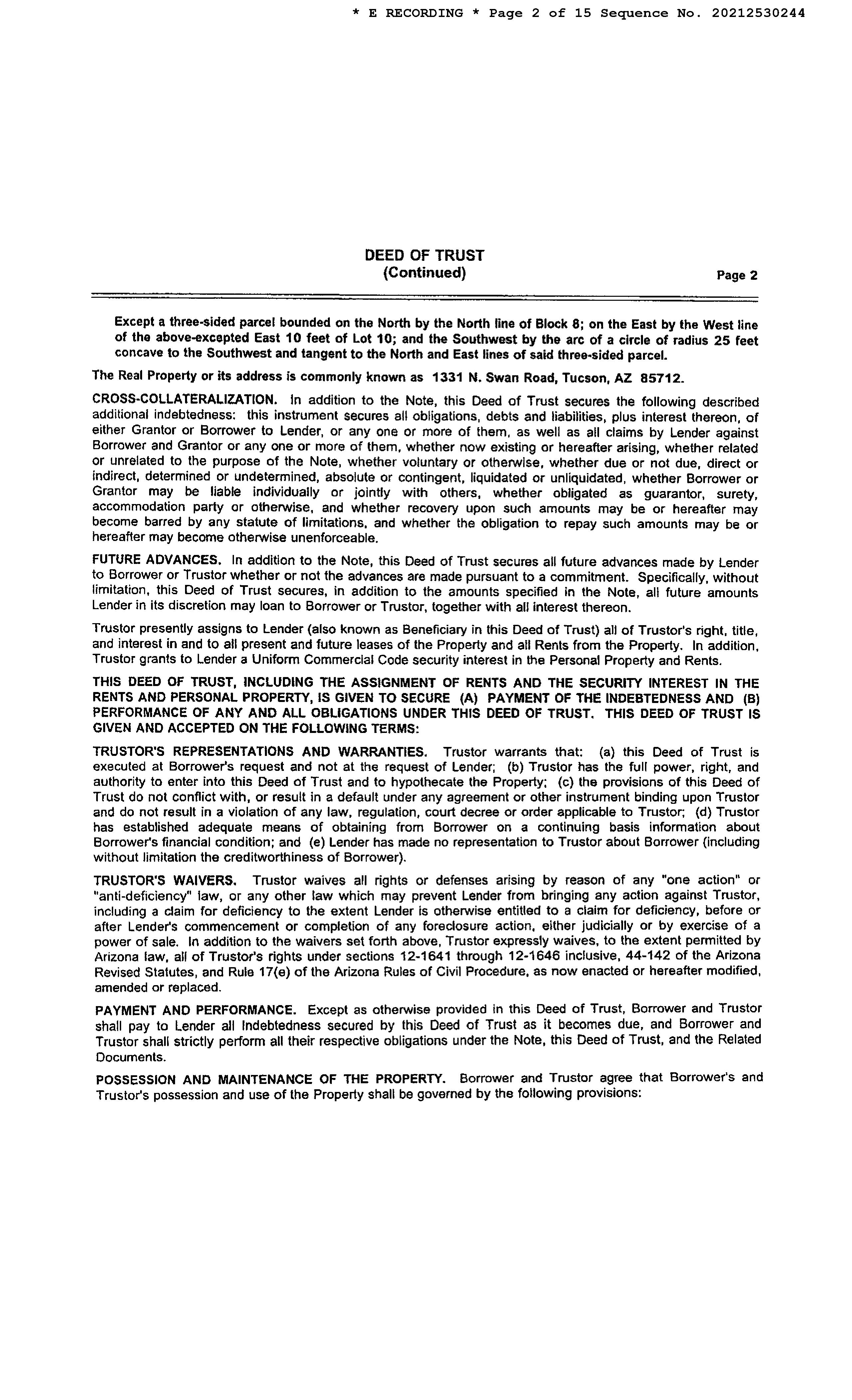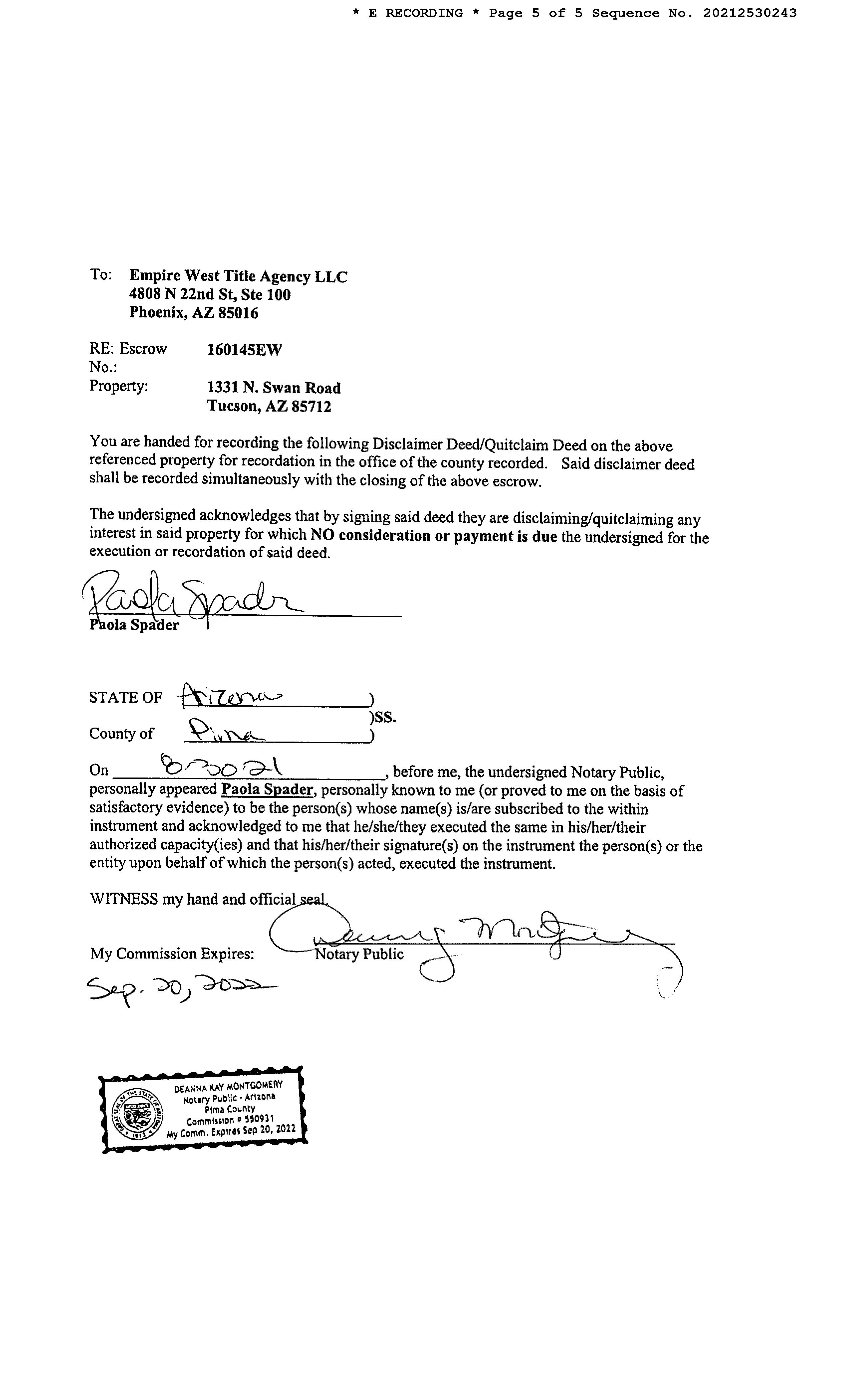 Mailing Address : 1331 N Swan Rd, Tucson AZ 85712-4040 C011