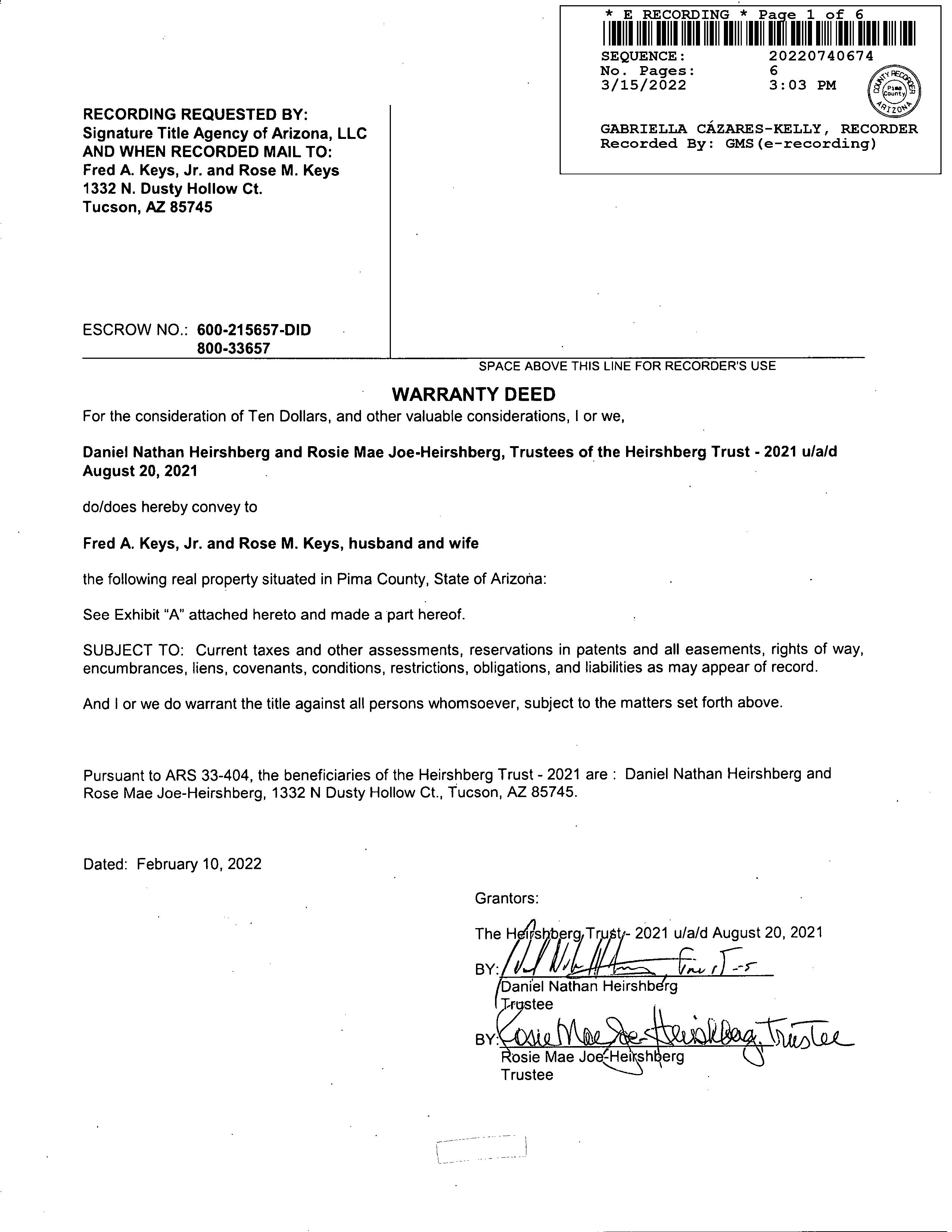 Owner Name: Keys Fred & Rose Living Trust / APN / Alternate APN: 116-07-133D / Deed Type: Warranty Deed