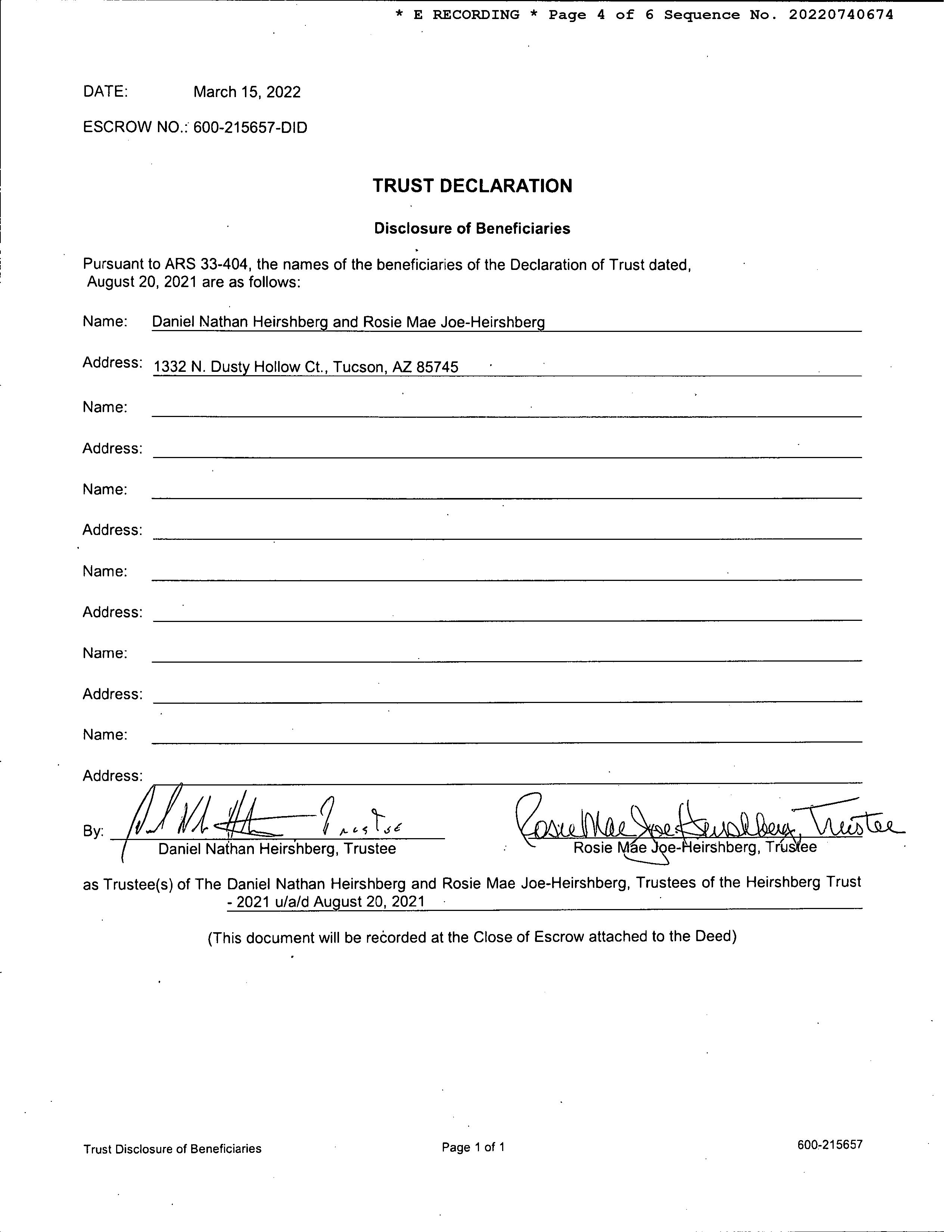 Mailing Address : 1332 N Dusty Hollow Ct, Tucson AZ 85745-8738 R064