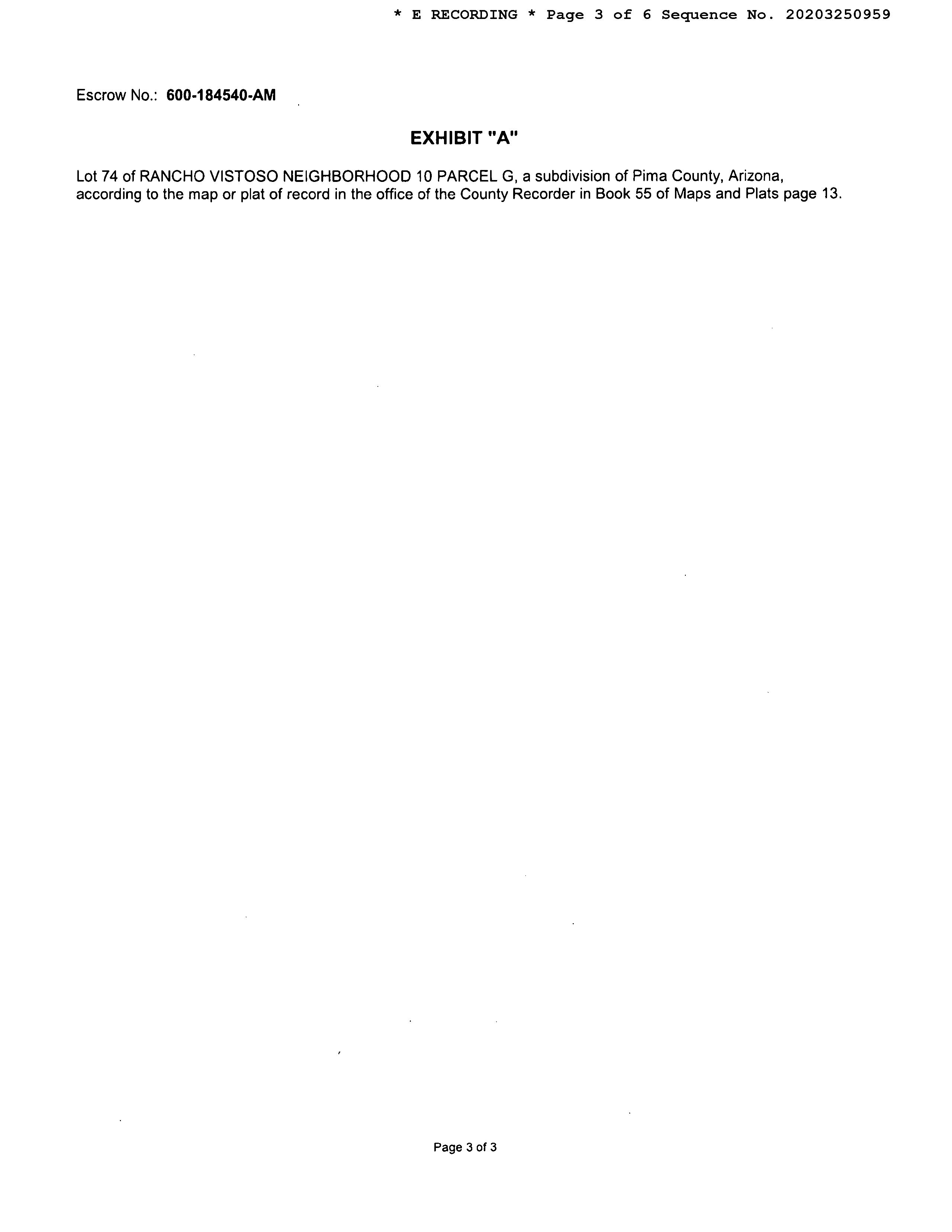 Legal Description : Rancho Vistoso Nghborhd 10 Pcl G Lot 74