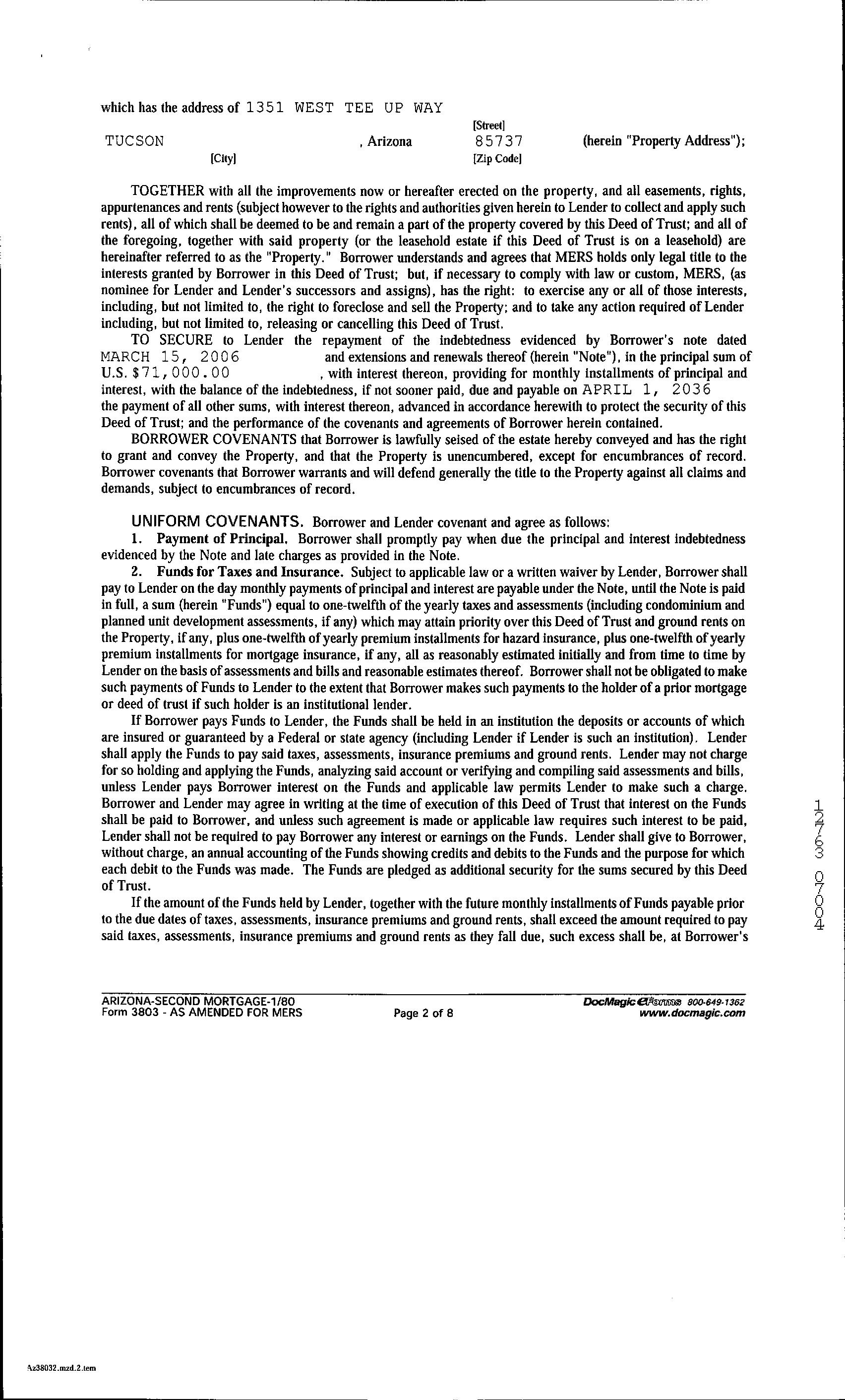 Recording/Sale Date : 03/17/2006 / 02/00/2006 1st Mtg Int. Rate/Type : 7.25% / Adjustable Int Rate Loan