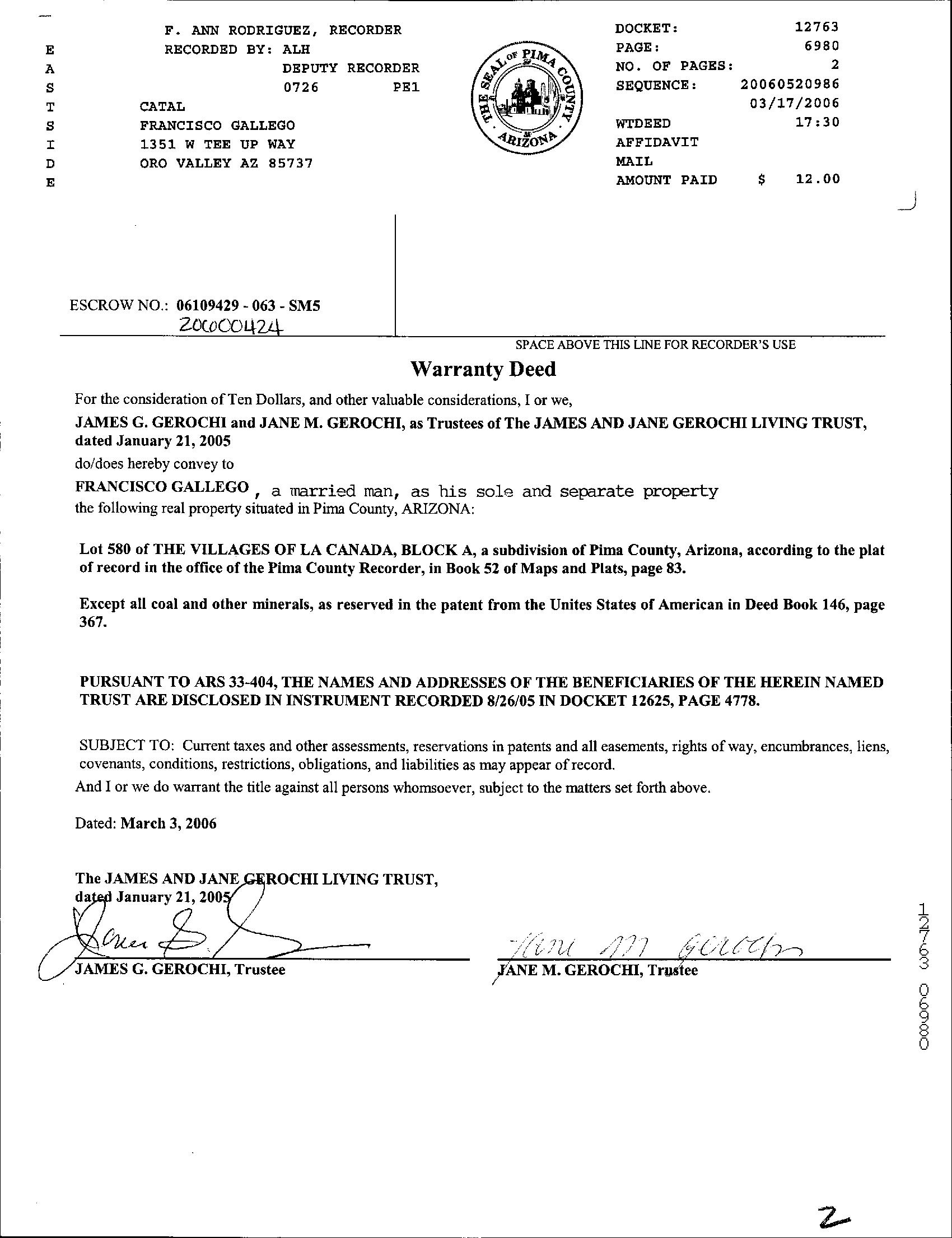 Mailing Address : 1351 W Tee Up Way, Oro Valley AZ 85737-7806 R030