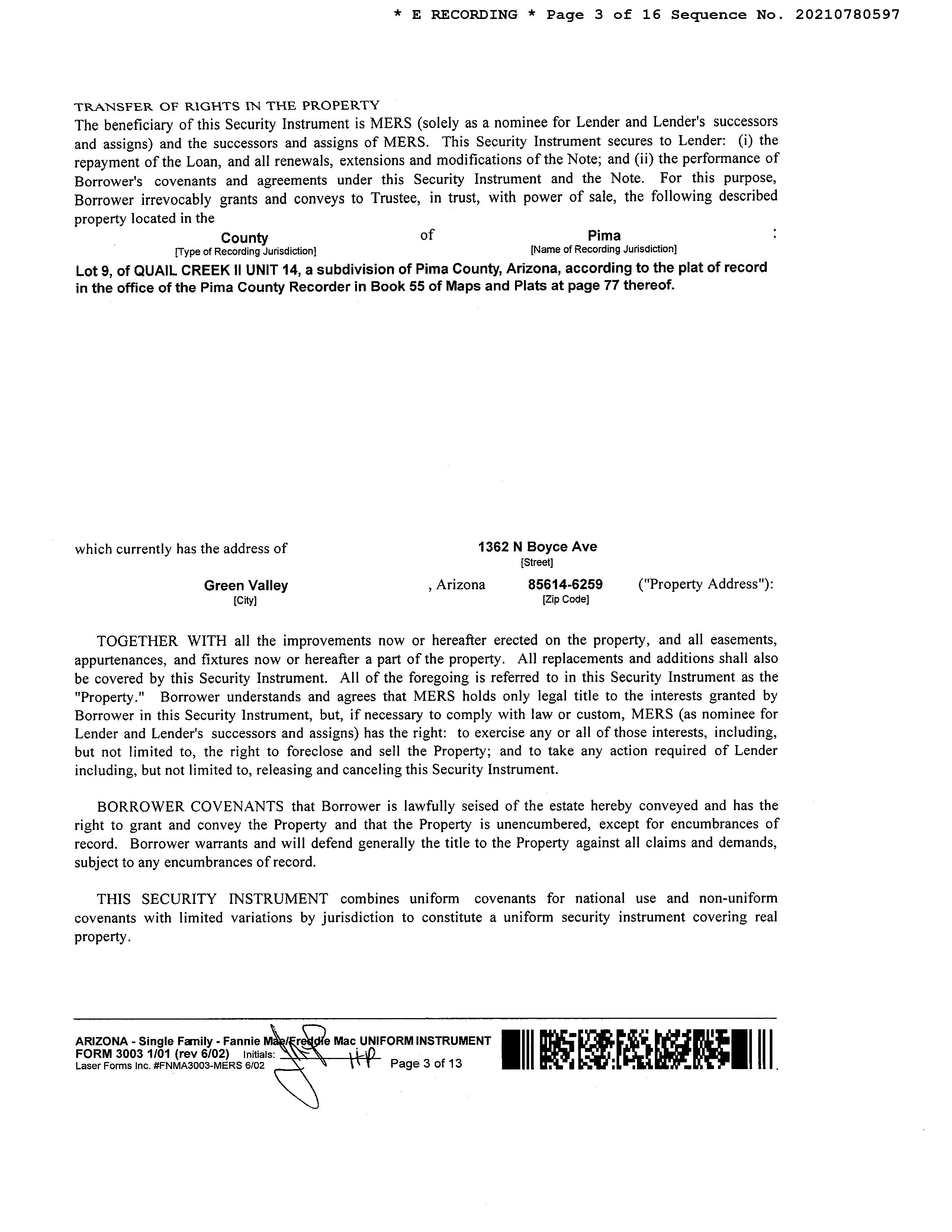 Legal Description : Quail Creek Ii Unit 14 Lot 9