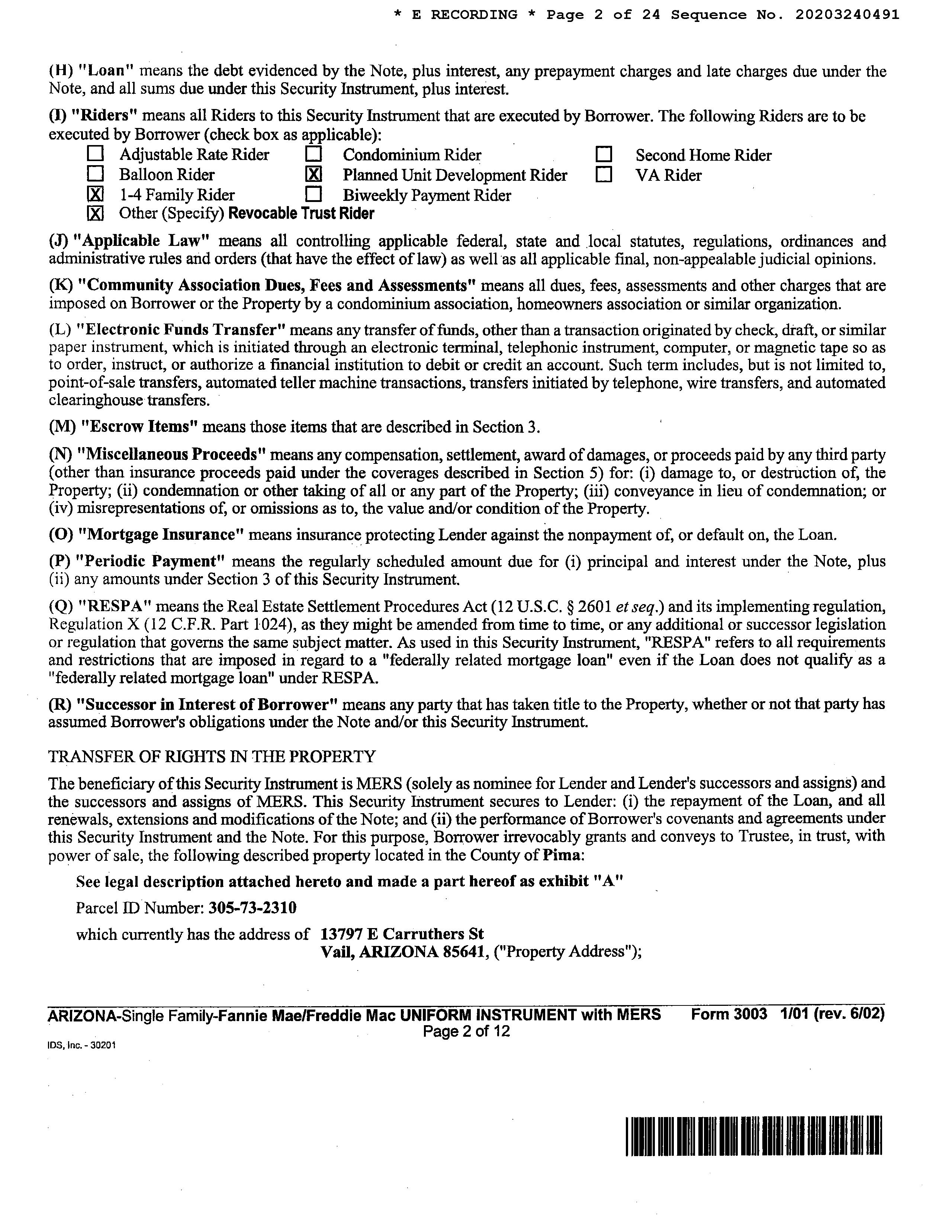 Subject Property : 13797 E Carruthers St Vail AZ 85641