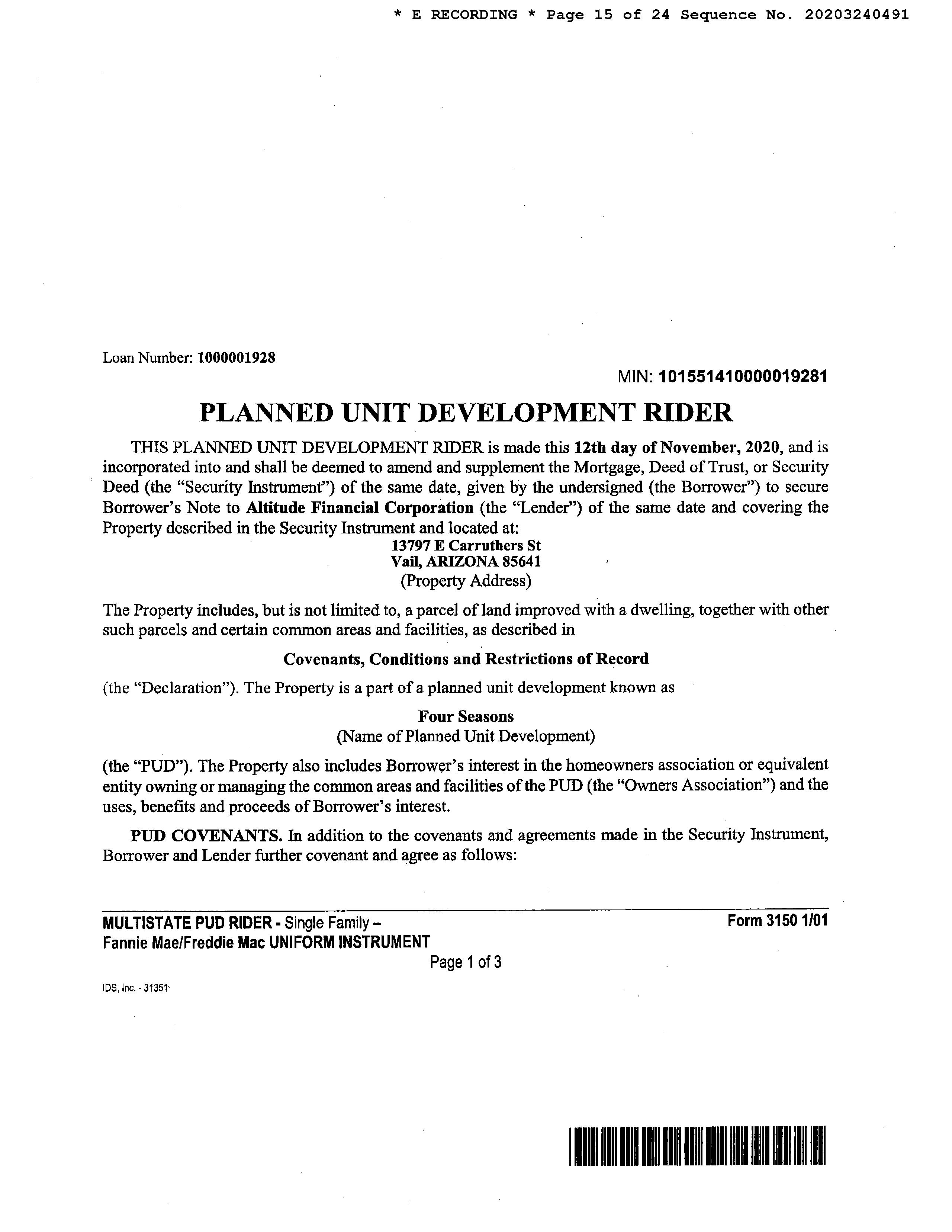Subject Property: 13797 E Carruthers St Vail Az 85641