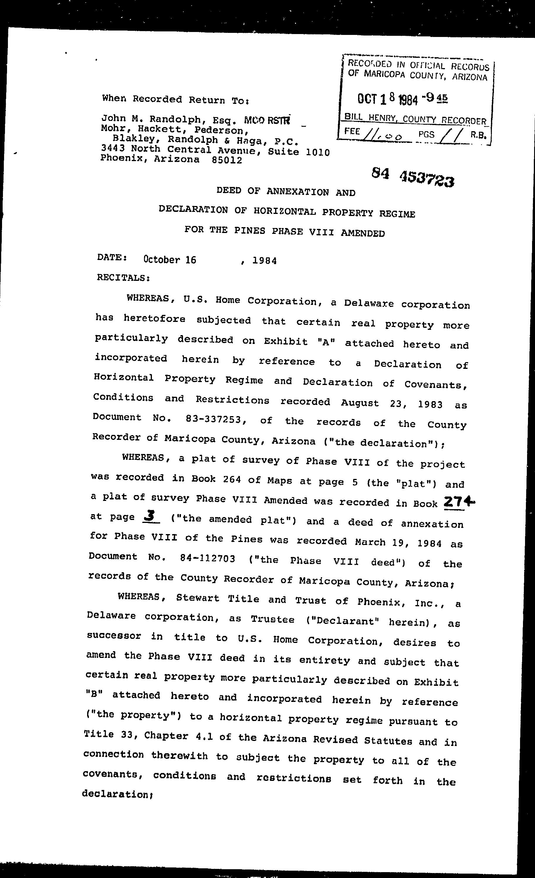 MARICOPA, AZ Document:RES 1984.453723 Page:1 of 11 Printed on:5/20/2024 4:14 PM Branch :FC0 User :JSTI