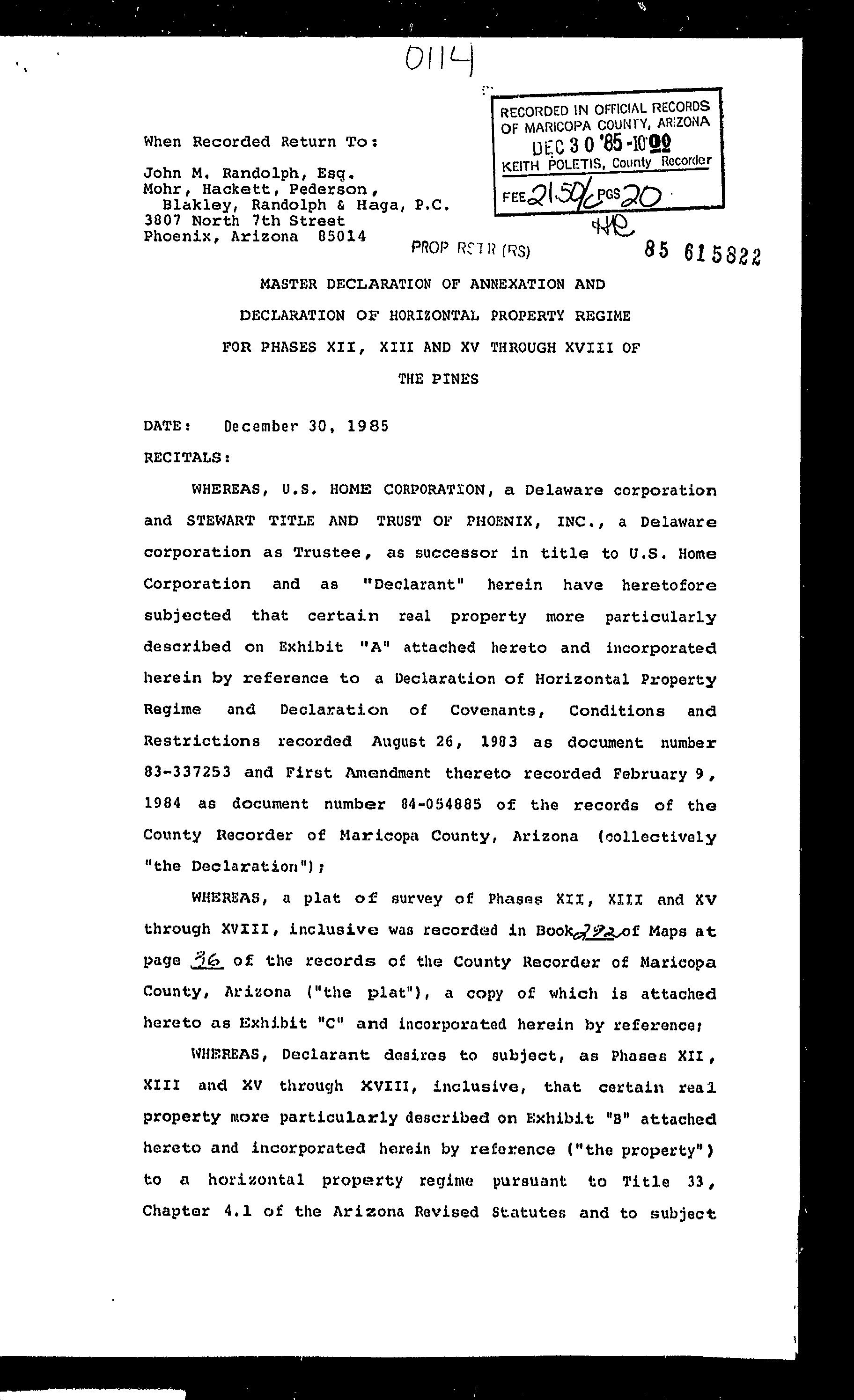 MARICOPA, AZ Document:NOT 1985.615822 Page:1 of 20 Printed on:5/20/2024 4:14 PM Branch :FC0 User :JSTI