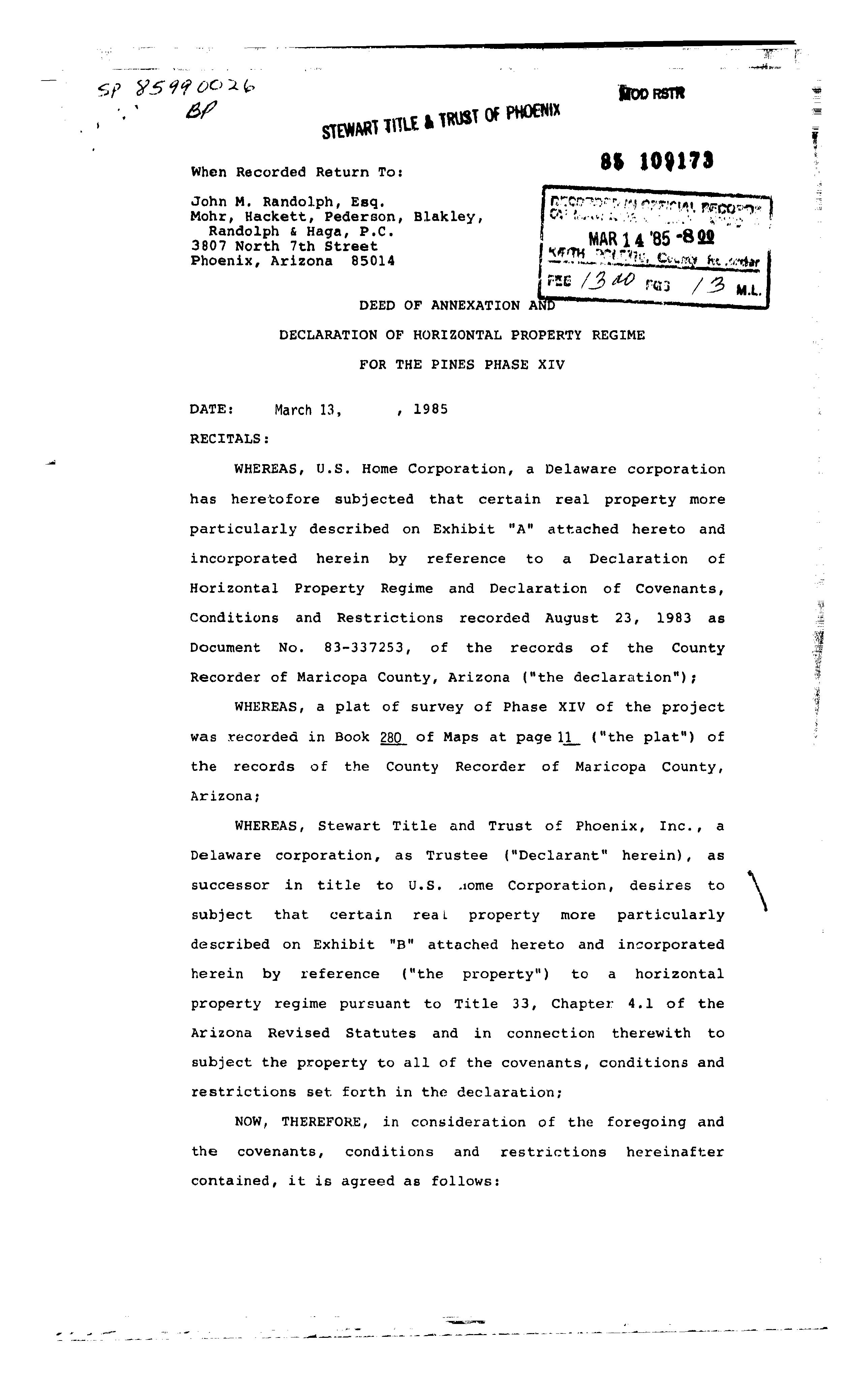 MARICOPA, AZ Document:RES 1985.109173 Page:1 of 13 Printed on:5/20/2024 4:14 PM Branch :FC0 User :JSTI