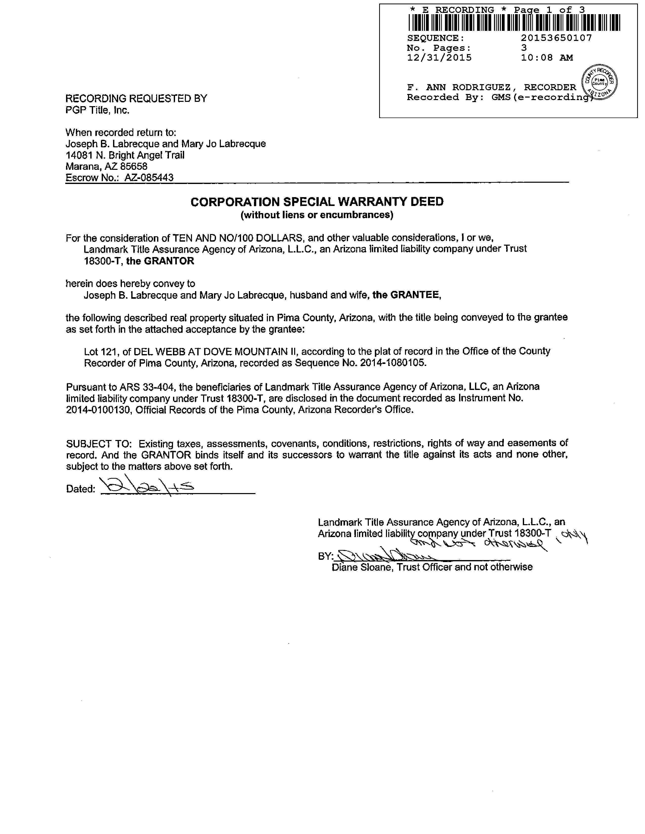 Deed Type : Special Warranty Deed