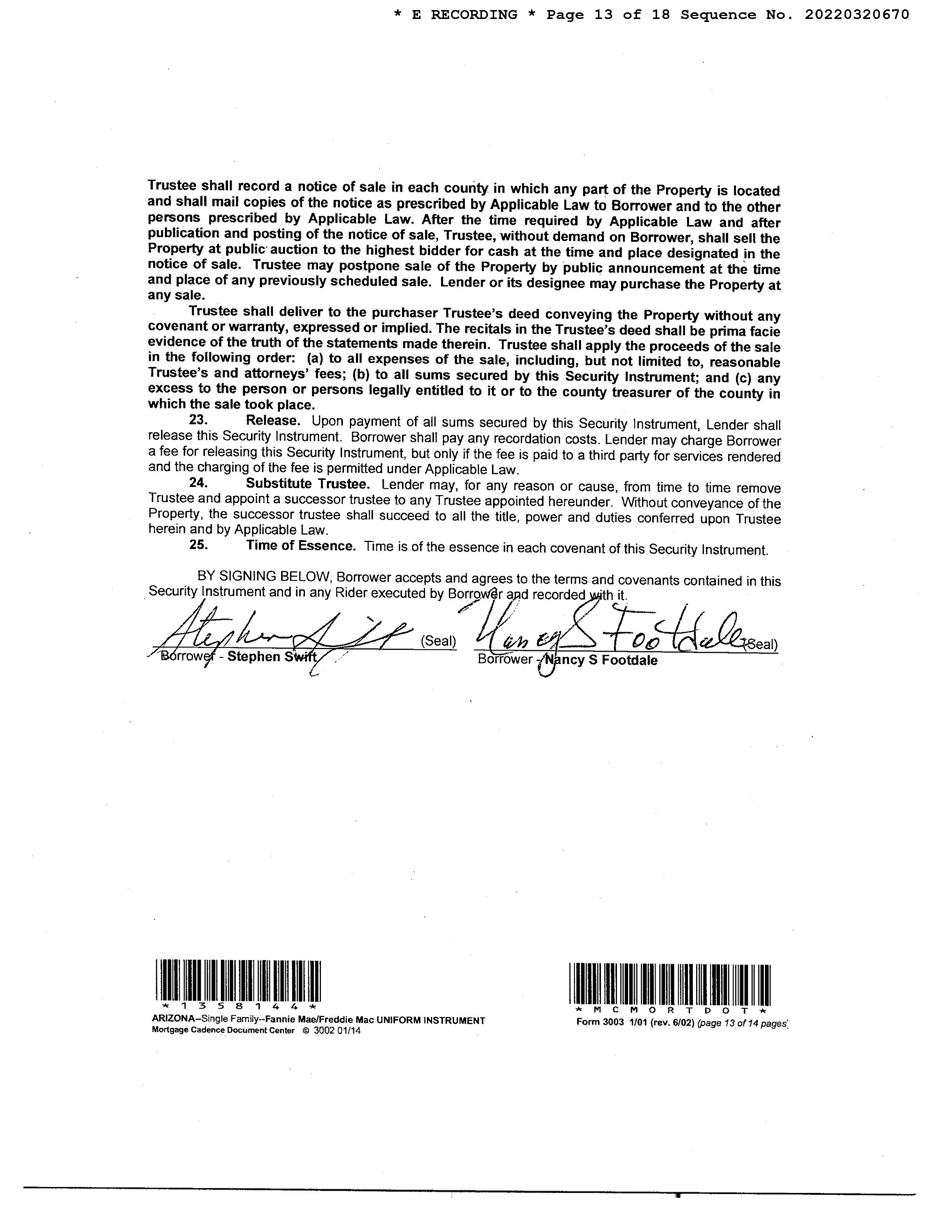 Subject Property: 140 E La Huerta Green Valley Az 85614 Owner Name: Swift Stephen /Footdale Nancy S