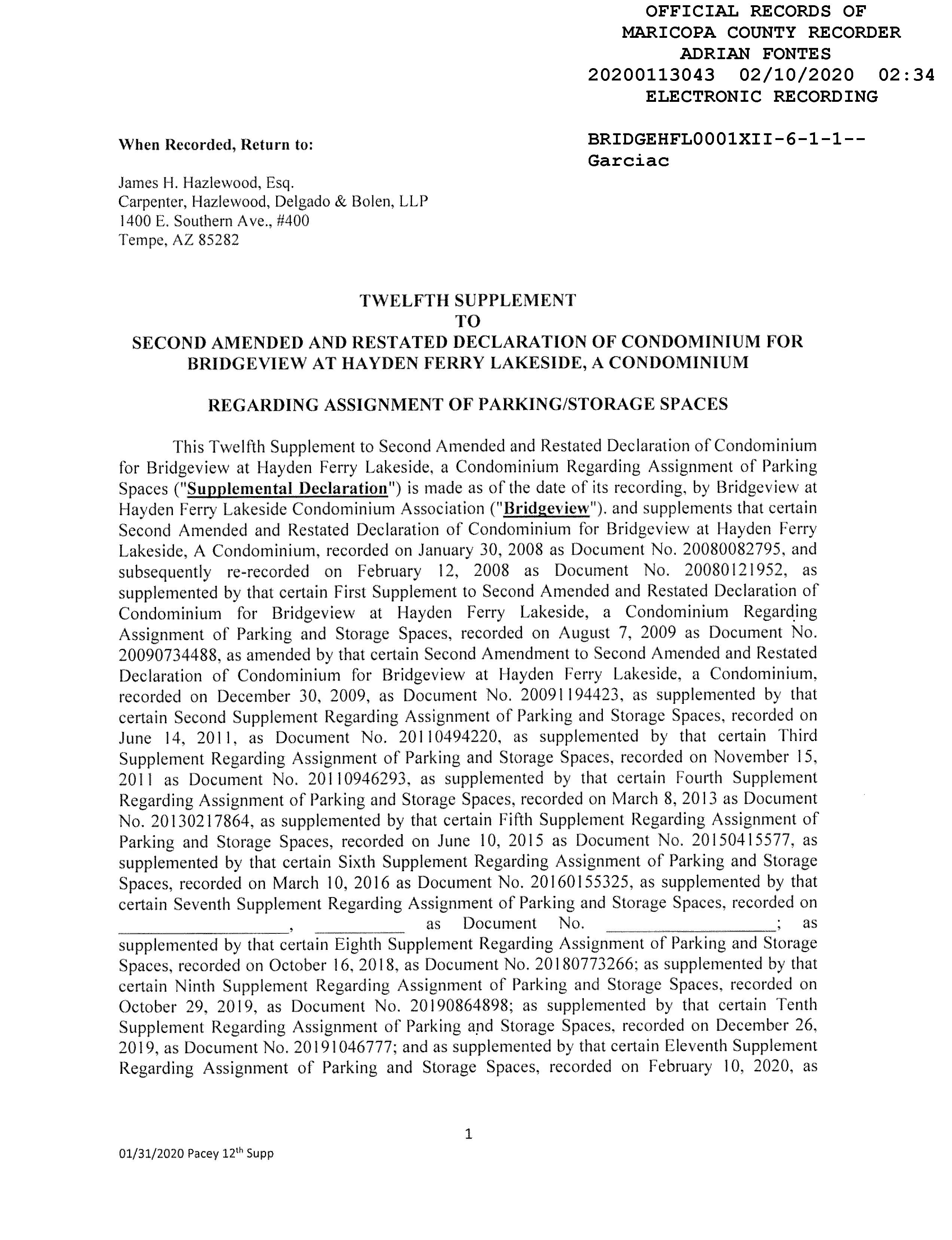 SUBDIVISION: BRIDGEVIEW AT HAYDEN FERRY LAKESIDE