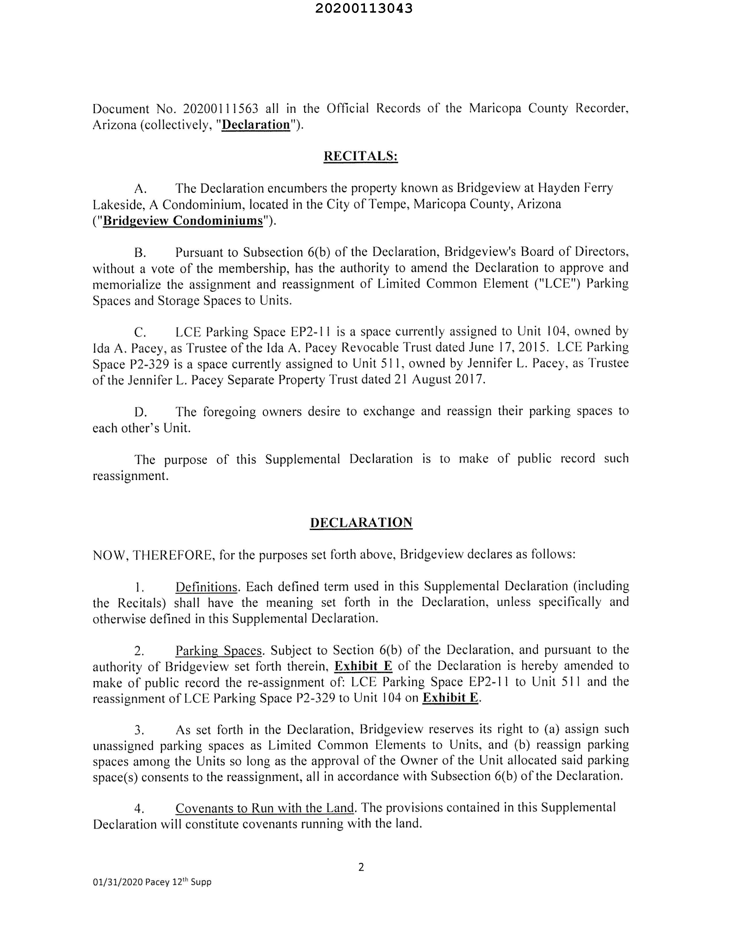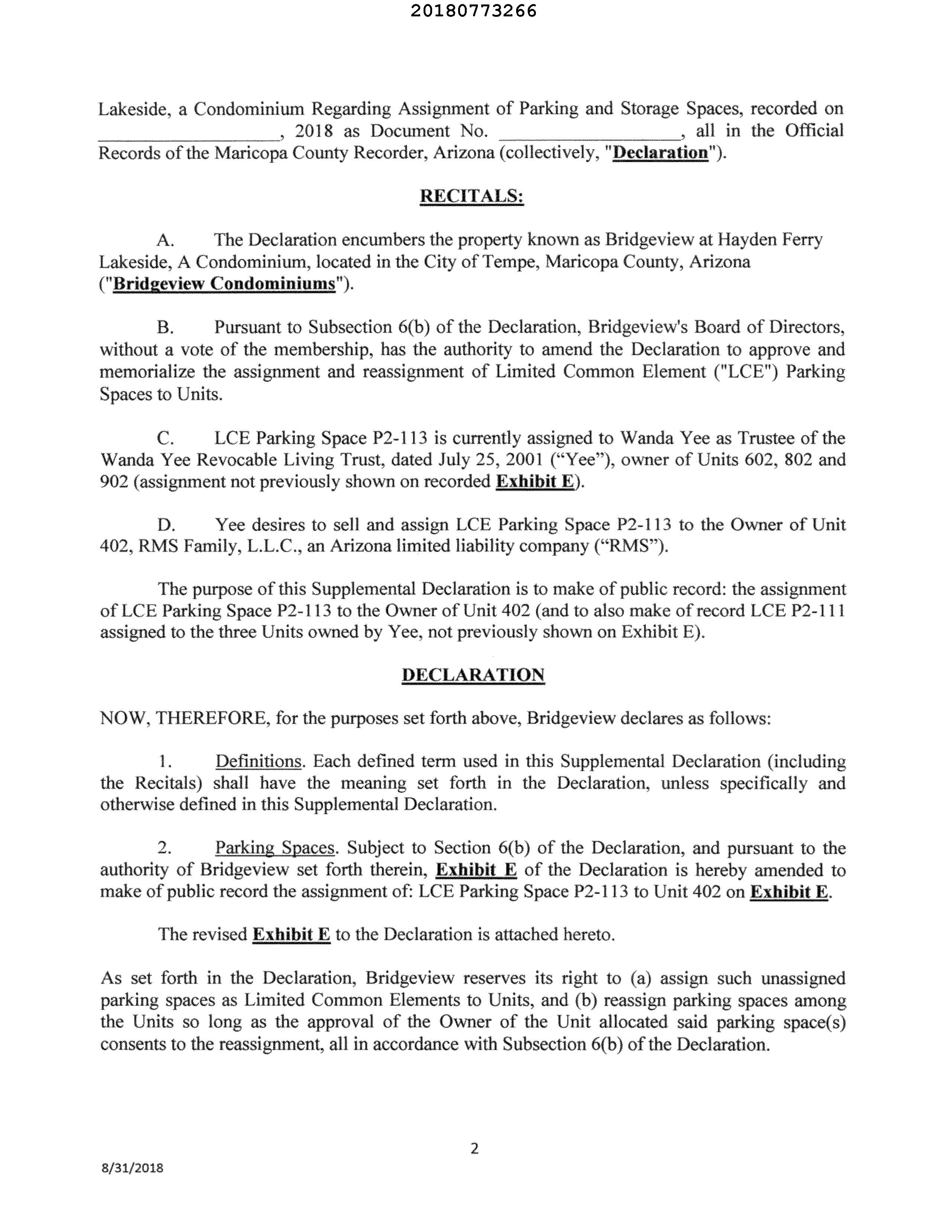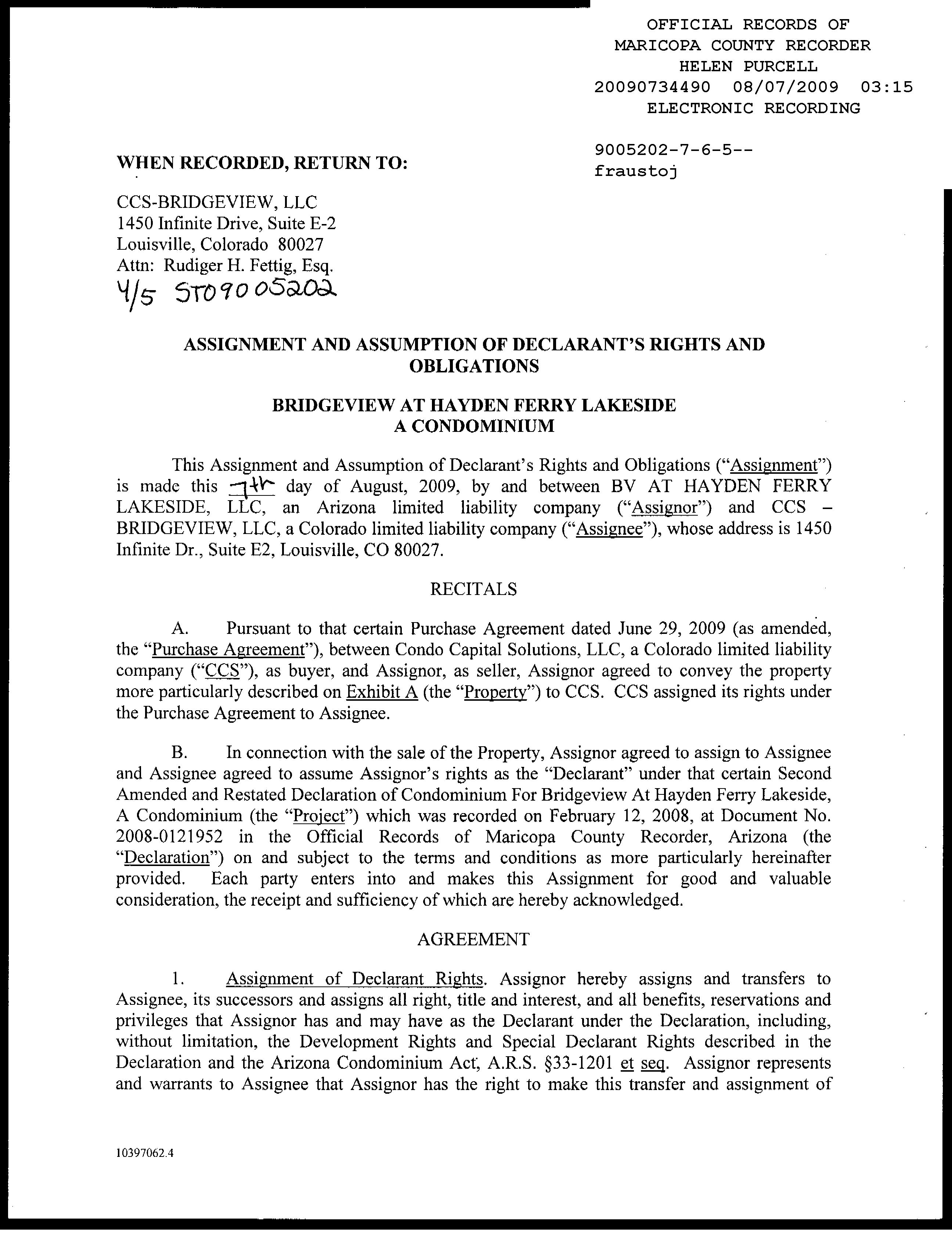 LEGAL: BRIDGEVIEW AT HAYDEN FERRY LAKESIDE CONDOMINIUM AMD MCR 970-21 UNIT 101 (PLEASE NOTE: FOR LEGAL DESCRIPTION REFERENCES REGARDING THE PERCENTAGE OF OWNERSHIP OF THE COMMON AREA'S PLEASE REFER TO THE RECORDED COVENANTS CONDITIONS AND RESTRICTIONS (CCR) ASSOCIATED WITH THIS PLAT.)
