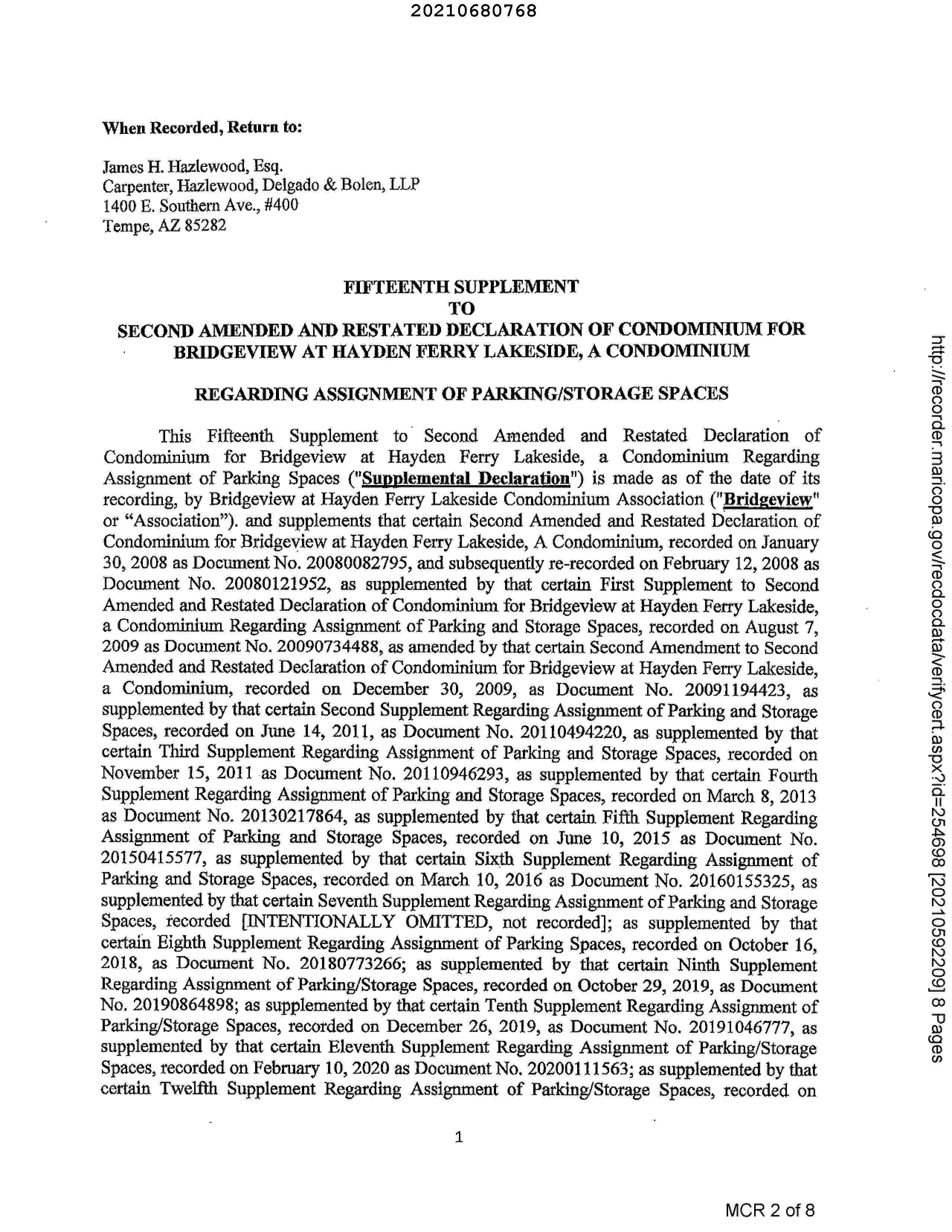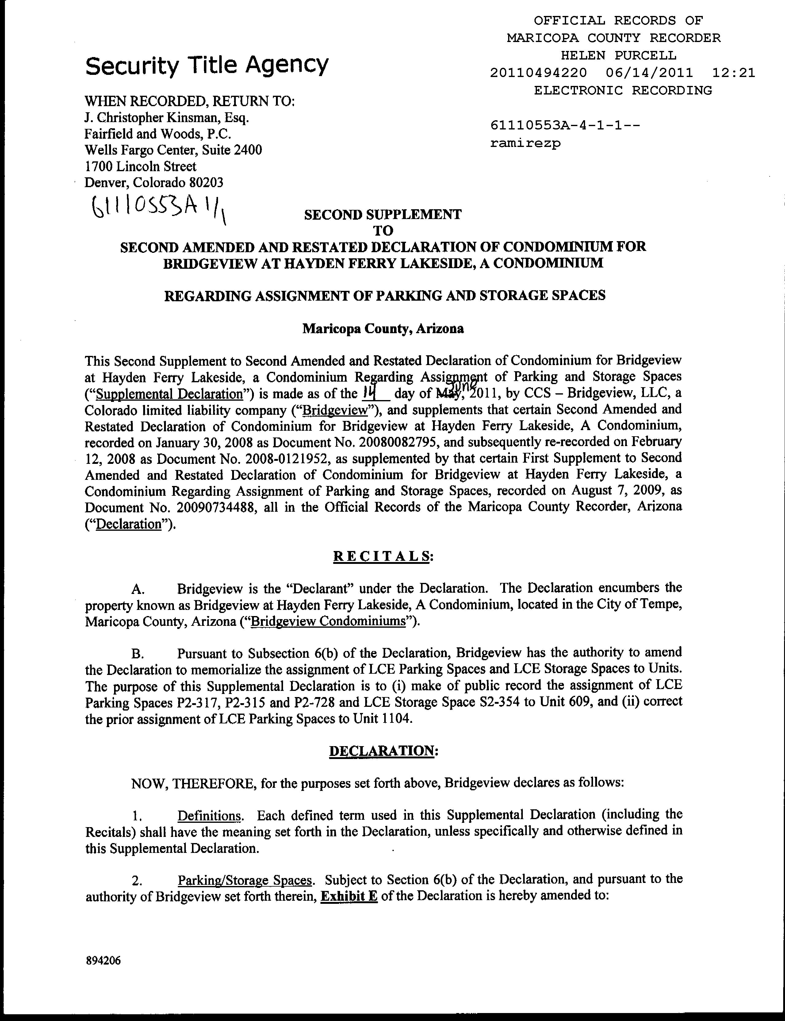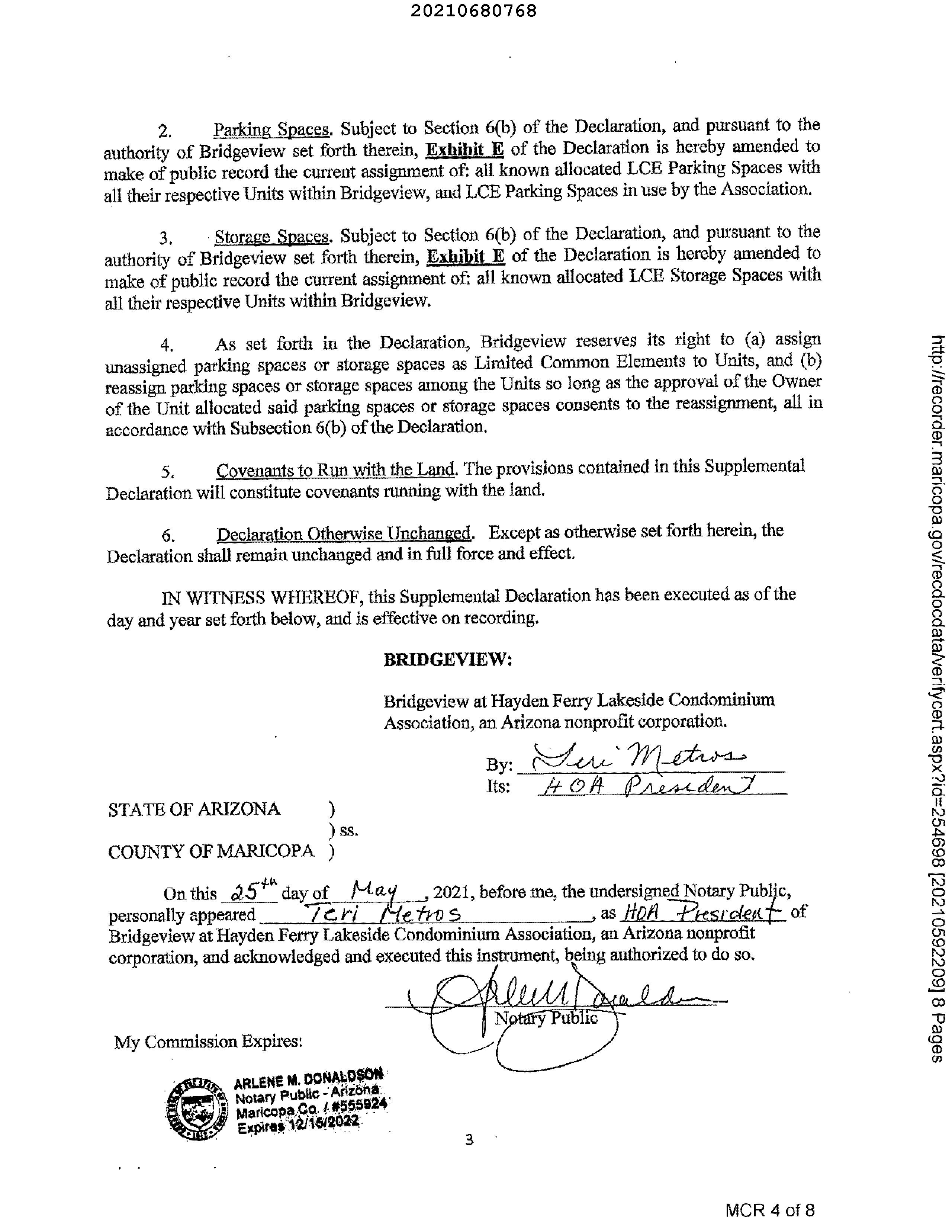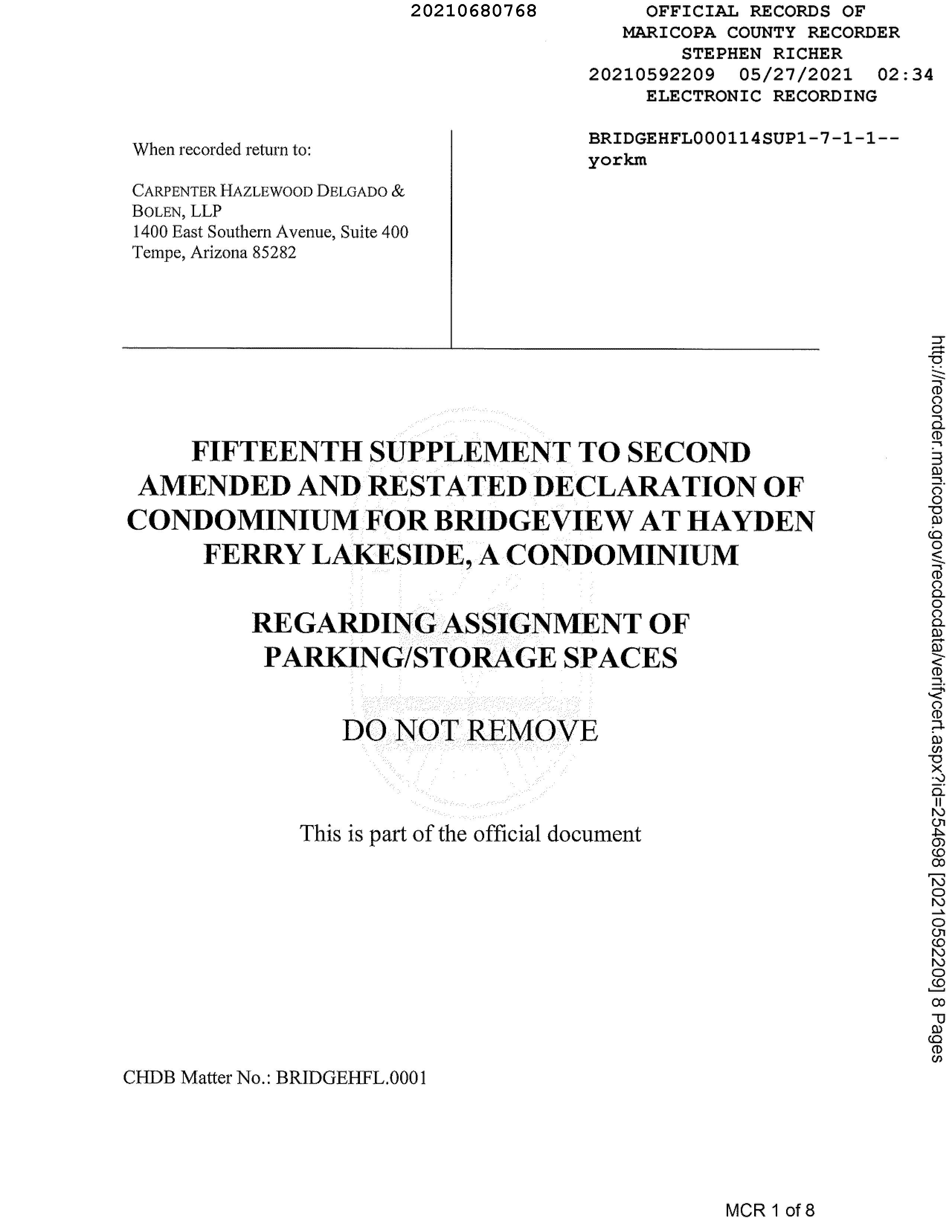 LEGAL: BRIDGEVIEW AT HAYDEN FERRY LAKESIDE CONDOMINIUM AMD MCR 970-21 UNIT 101 (PLEASE NOTE: FOR LEGAL DESCRIPTION REFERENCES REGARDING THE PERCENTAGE OF OWNERSHIP OF THE COMMON AREA'S PLEASE REFER TO THE RECORDED COVENANTS CONDITIONS AND RESTRICTIONS (CCR) ASSOCIATED WITH THIS PLAT.)